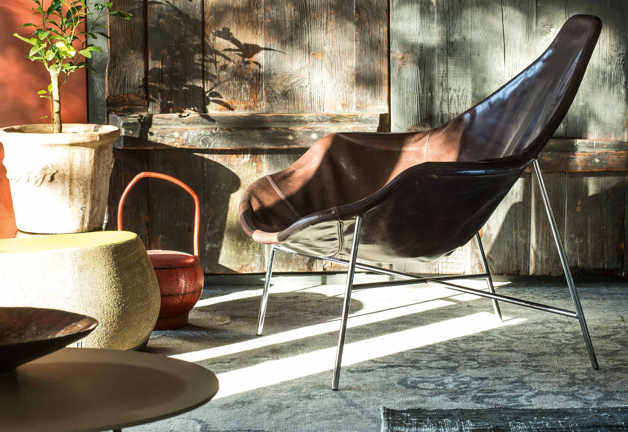 精心研究的设计始于框架、支架的质量。人体工程学决定座位的位置。获得舒适的两种互补方式:支持和包络。椅子和扶手椅在底座上有一个软垫外壳;而躺椅和扶手椅的盖子则直接固定在镜框上,这是一个用来支撑和引诱占领者的囊。这个名字取自于由咖啡和朗姆酒制成的加勒比海甜酒,是关于双重身份的,这是对一种对立的游戏的暗示。姿态既正式又非正式,扶手的对称和不对称,框架的棱角和曲线。所有的用途都是允许的:等待,休息,放松。