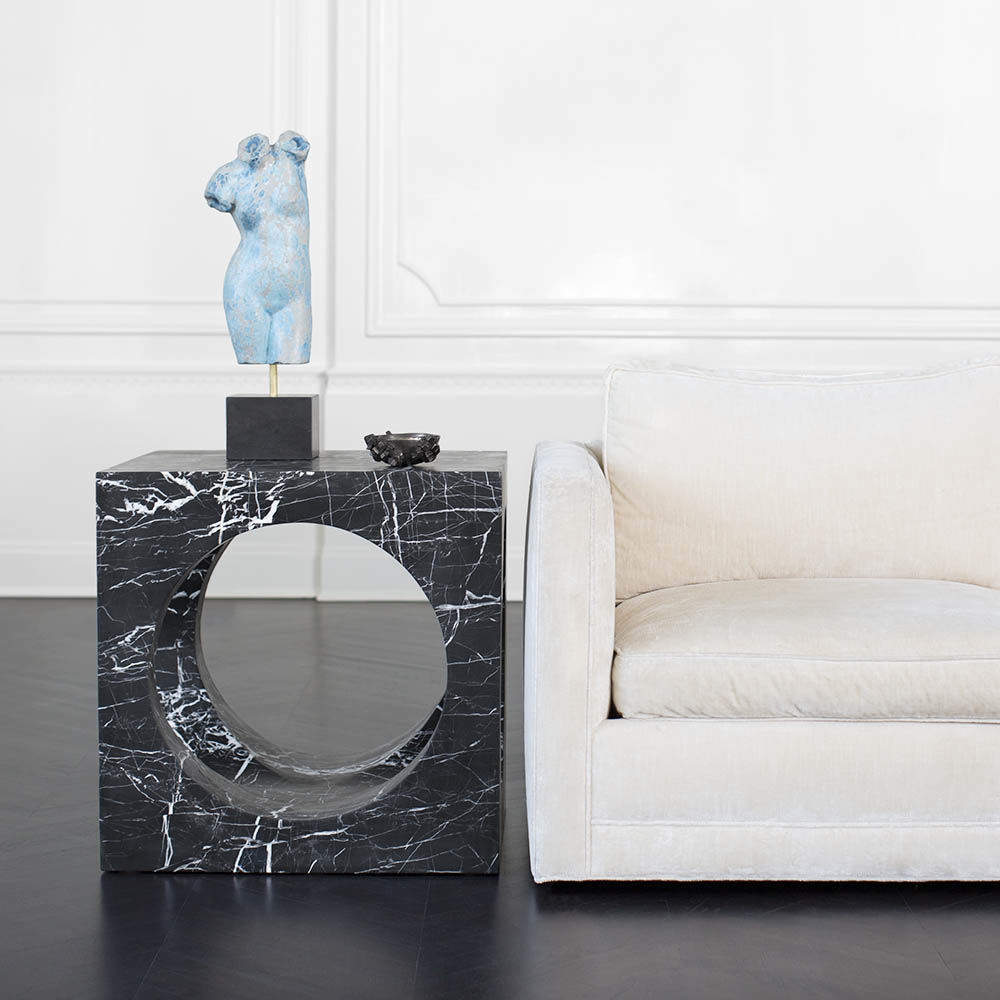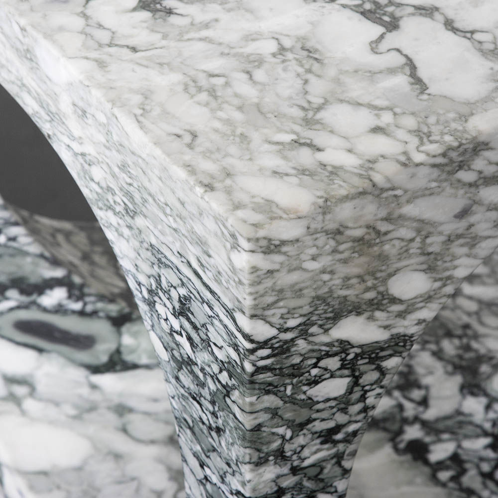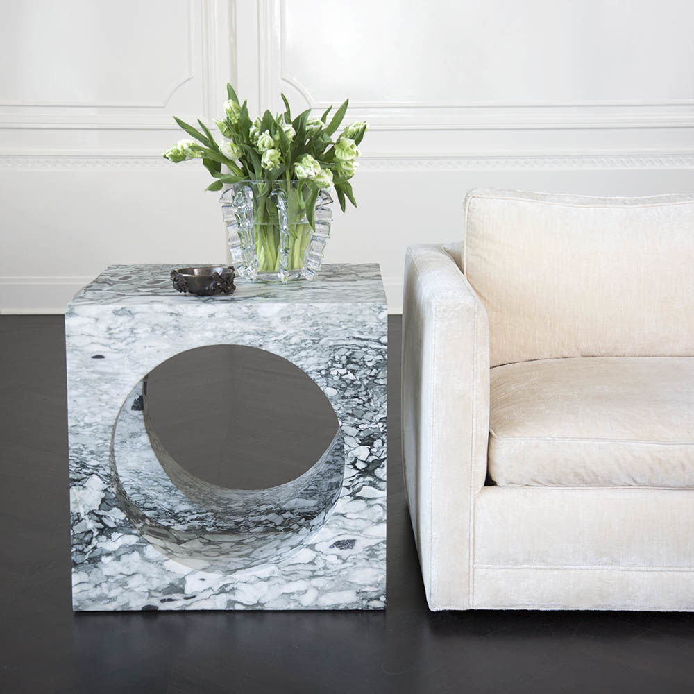 Selby Side Table(塞尔比边几)由大块坚固的大理石雕刻而成,是一种有机极简主义运动。 完美切割圆柱相交,使这个匀称的边桌具有虚幻的光学质量。 大花大理石,密封和磨光丰富,具有复杂和华丽的运动。