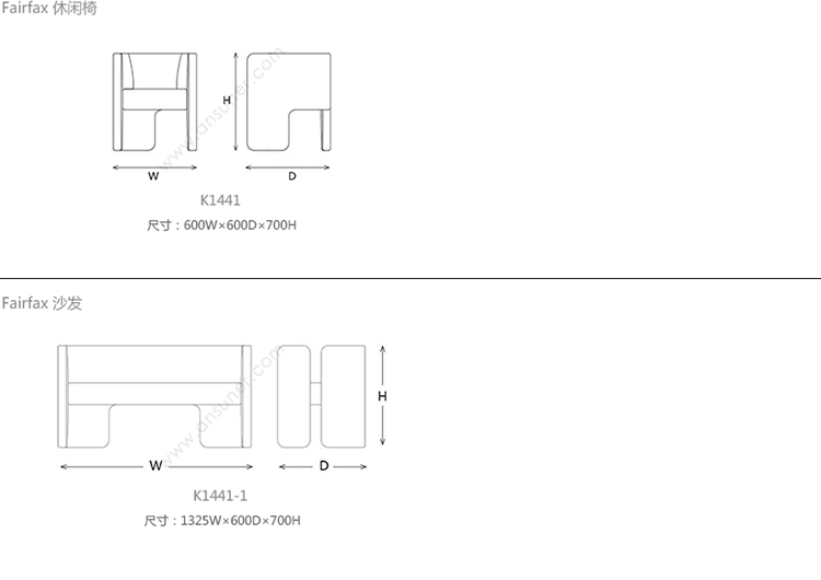 Fairfax 休闲椅 系列尺寸/示意图