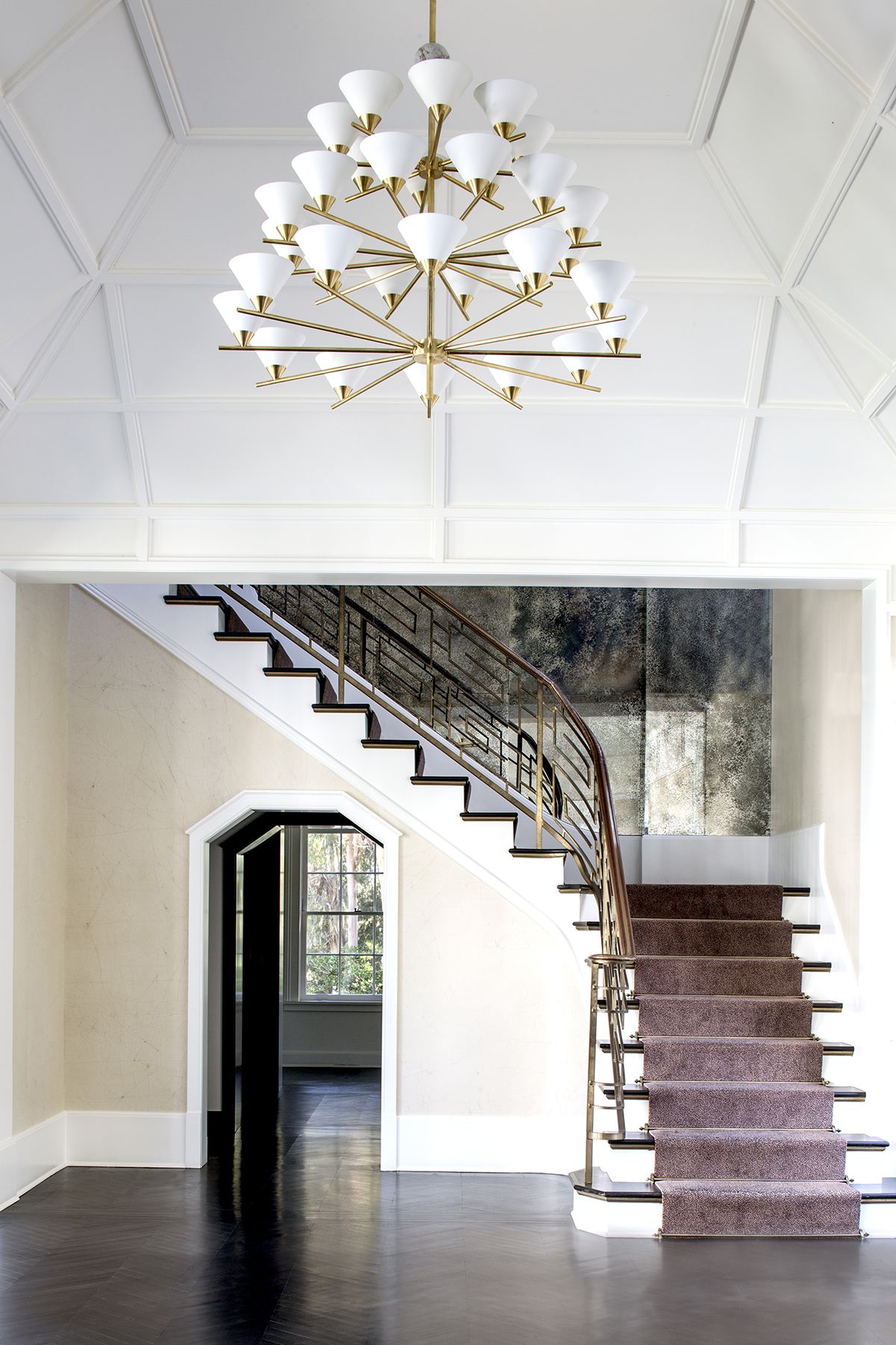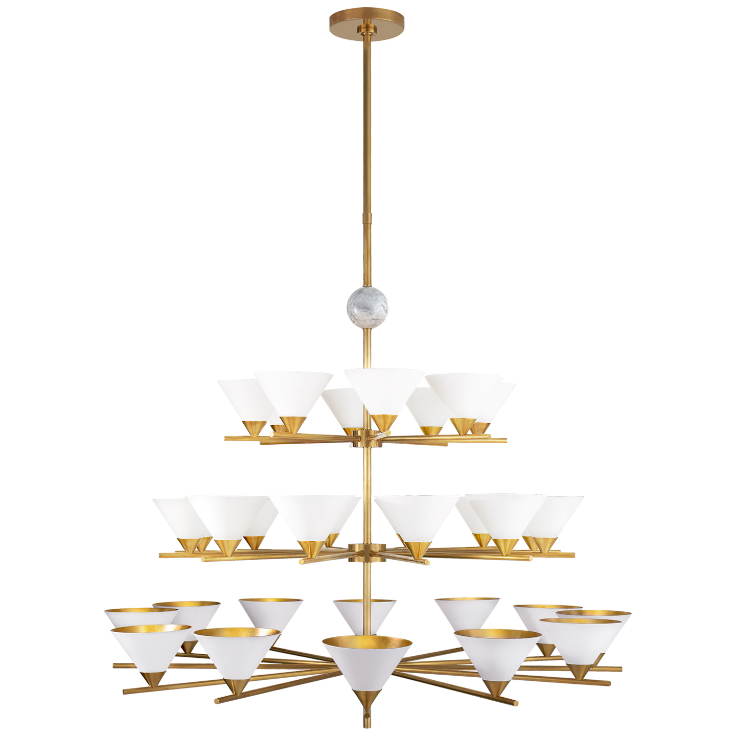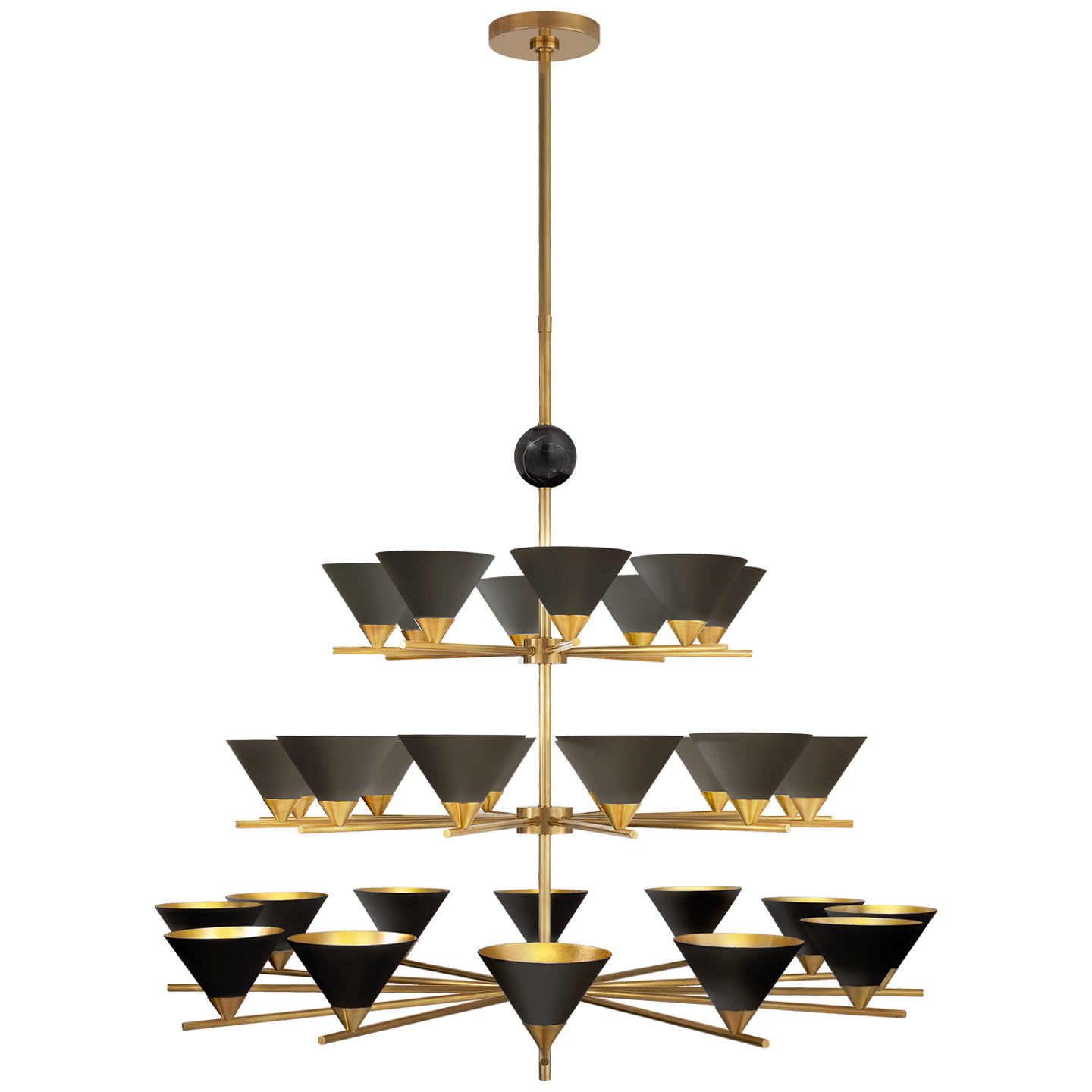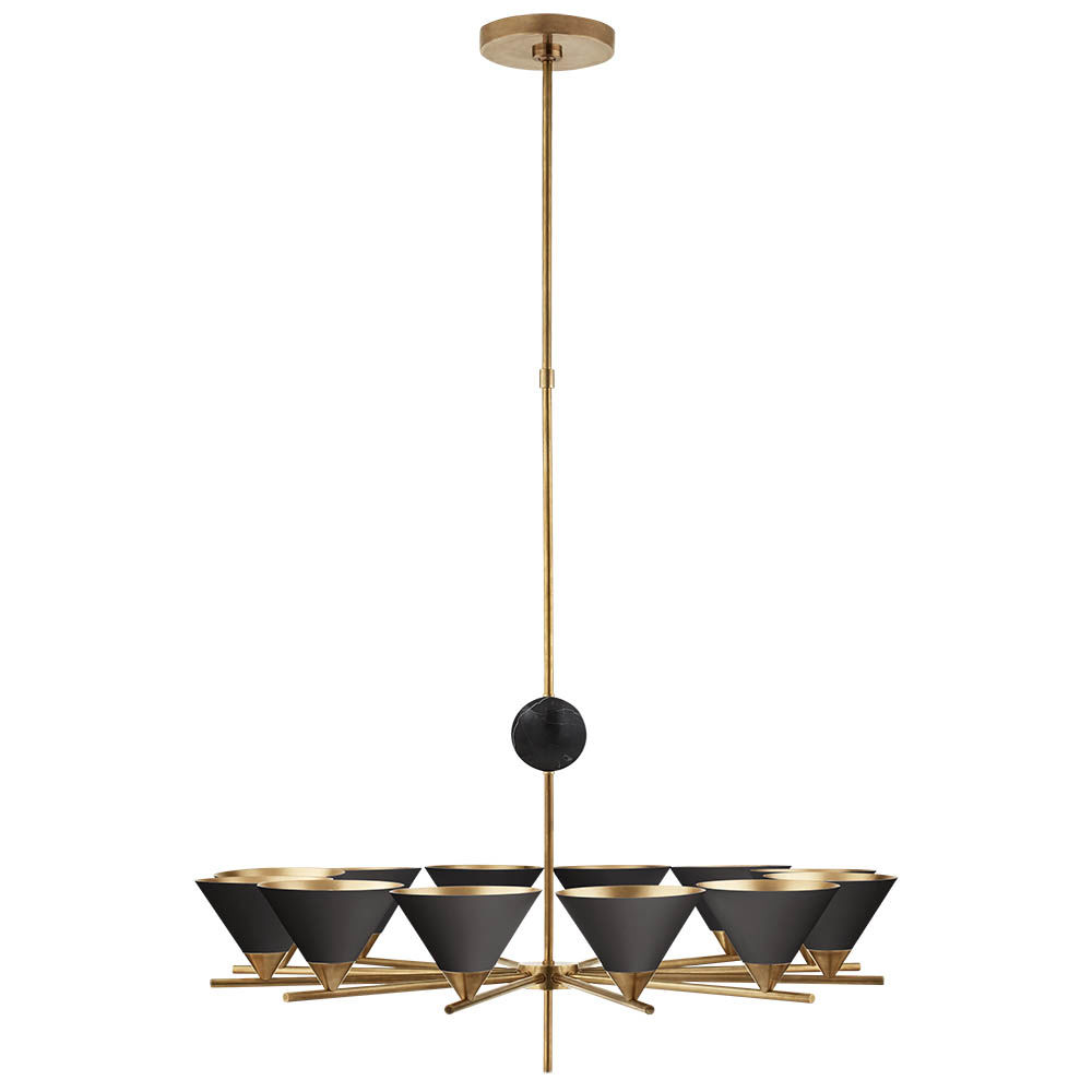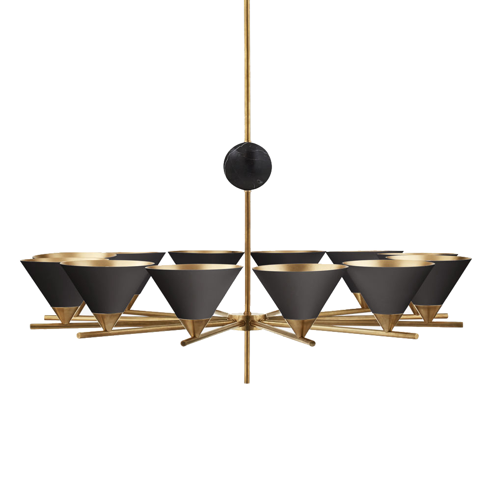 Cleo枝形吊灯以大胆的几何形式突出了混合物质的美感。 这款古董抛光黄铜吊灯采用镀金色罩内饰,可选择白色大理石球形的古色古香色调或黑色大理石球形黑色色调。