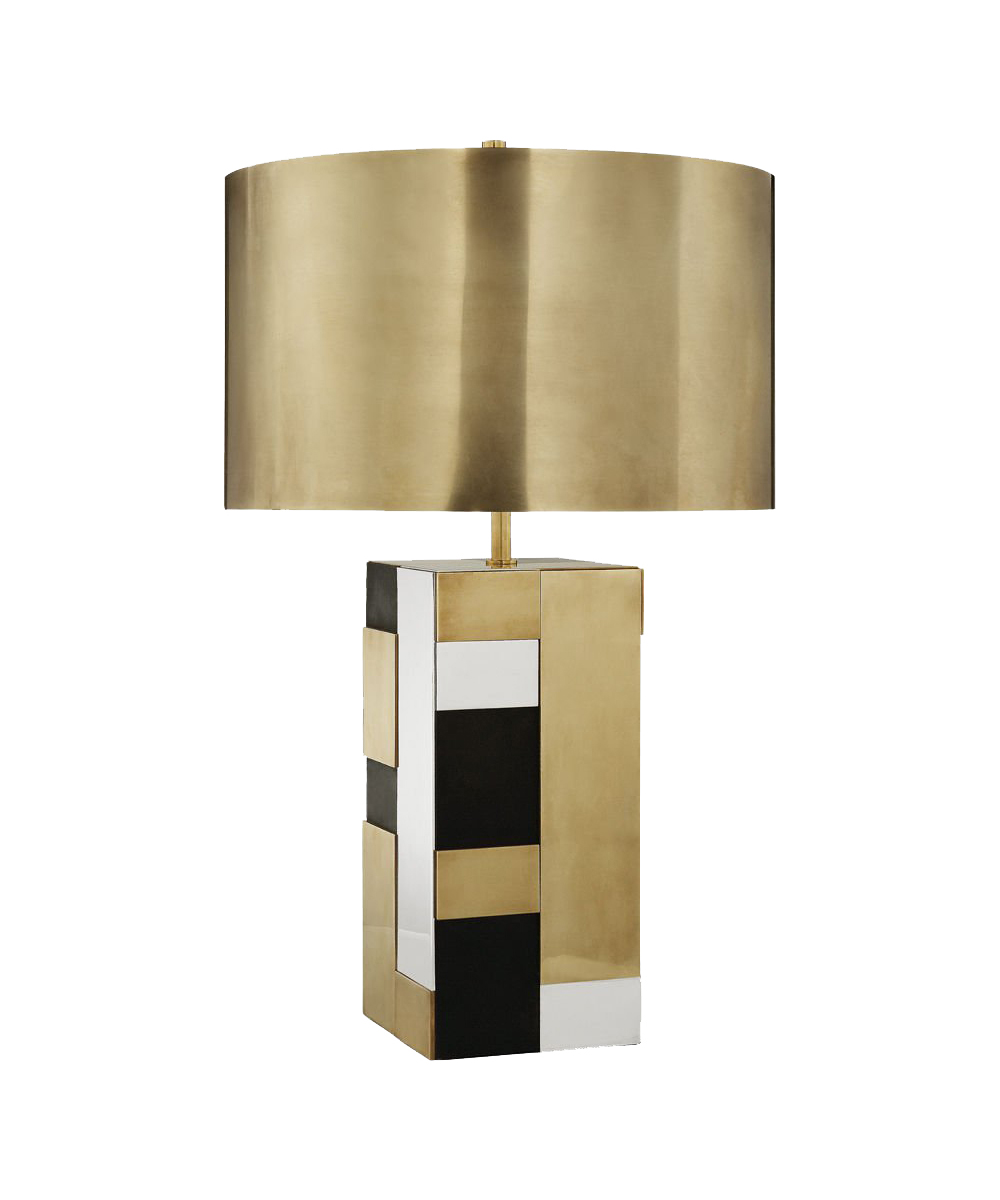 这款独特醒目的台灯结合了黄铜,青铜和抛光镍,创造出光彩夺目的雕塑艺术品。
