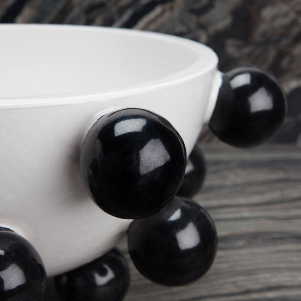 我们的流行碗是手工雕刻和手绘的哑光黑色和白色釉。有趣而又复杂,这款产品将给任何桌面带来活力。