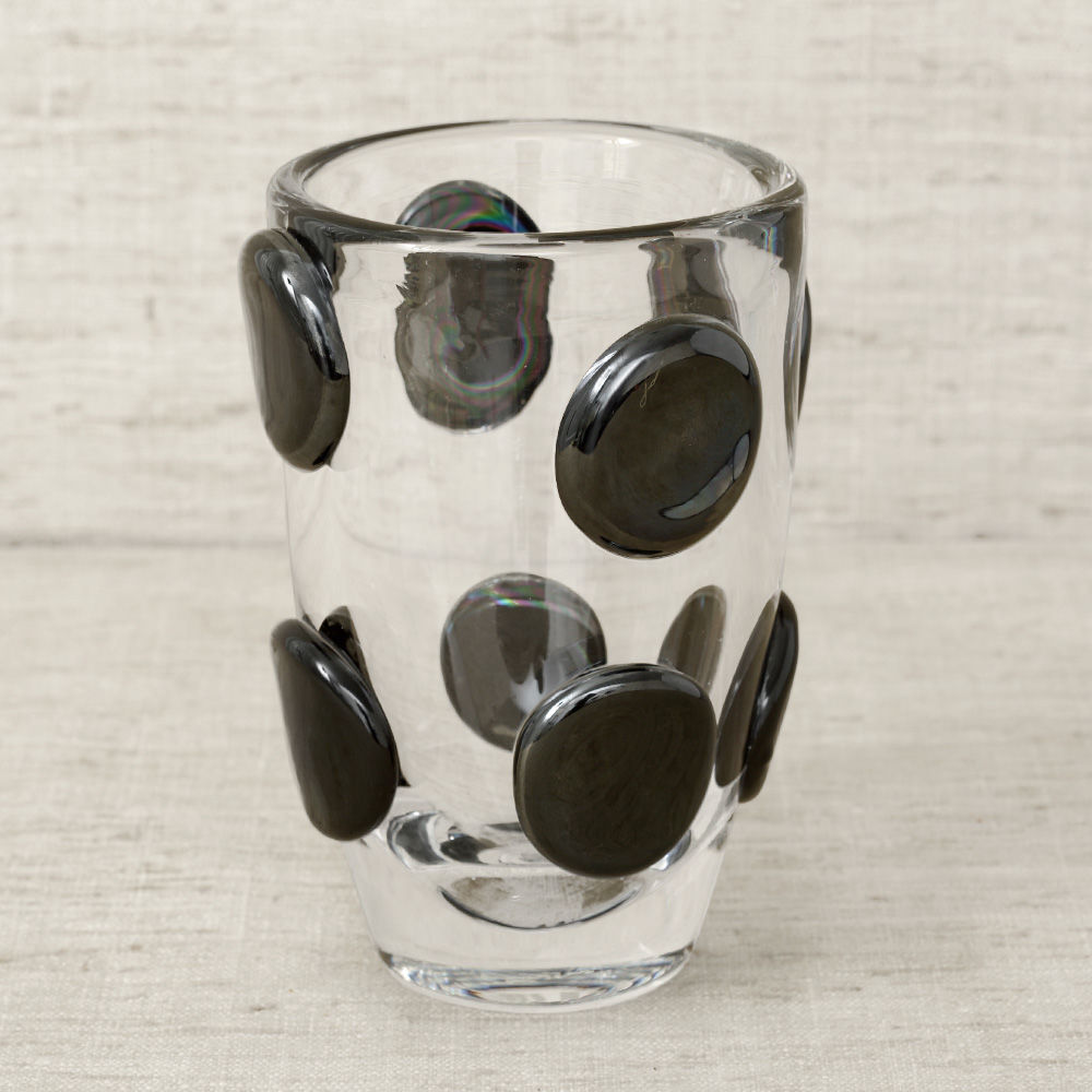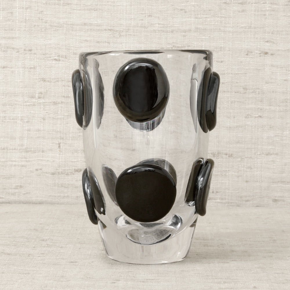 Encircle花瓶由墨西哥城的手工吹制透明水晶制成,由工匠玻璃鼓风机制成。 每个花瓶都有一系列圆形石墨黑色玻璃坯料。 玻璃的厚度及其有机形状赋予该作品显着的视觉重量。 Encircle花瓶非常适合插花或作为独立装饰。