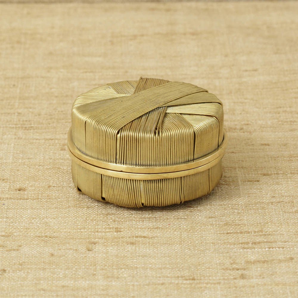这款黄铜线包裹盒采用洛杉矶手工制作,顶部和底部饰有verde铜绿色细节。 这个盒子是床头柜或梳妆台的完美选择。