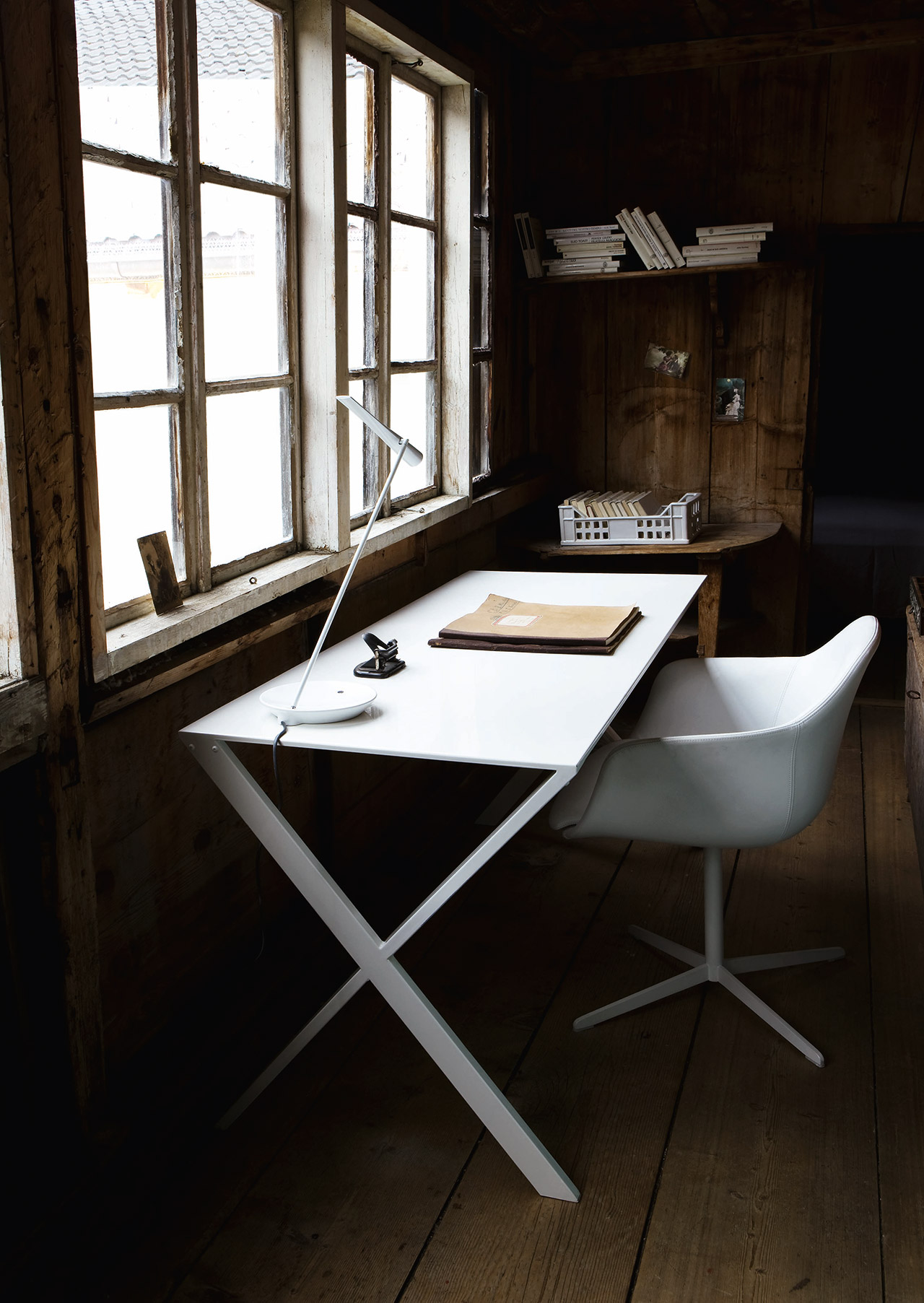 多功能桌子或办公桌。 顶部由折叠起来的激光切割铝板构成; 金属底座支撑,铝挤压腿。 桌子采用哑光漆,有白色,蓝色,红色,灰色和黑色可供选择。