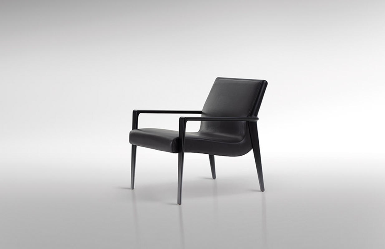 The Nairobi armchair Lounge version has a solid-wood structure stained dark brown and has been reinterpreted in traditional, harmonious and fluid cabinet-maker style without any interruptions in shape.