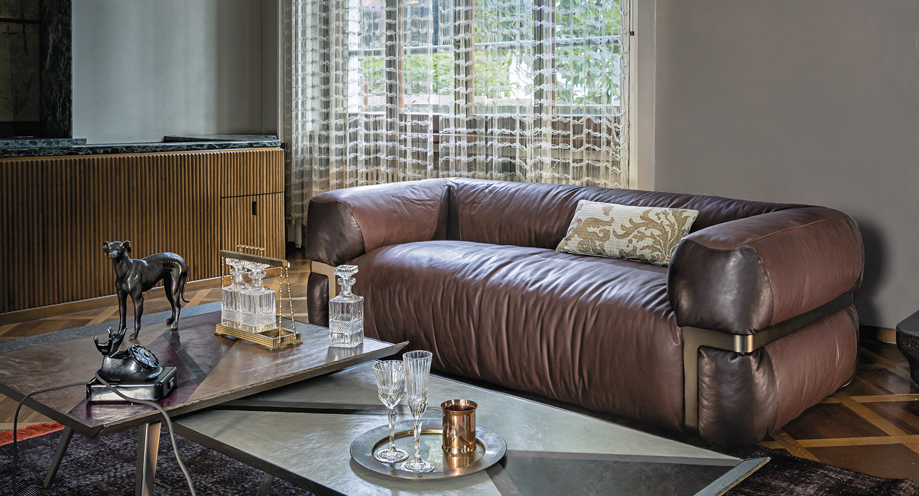 由Manzoni & Tapinassi设计的莲花沙发,可以让人对“组合沙发”的概念产生最大的影响,因为它可以根据自己的品味和所处的环境组合在一起。尽管它的背部很低,但它柔软而圆润的线条,以及它的衬垫,包裹着身体,给人极大的安慰。沙发的侧面,被云母棕色着色的镀锌的钛制金属框架阻断。角落里的补丁是一种装饰性的图案,因为它们可以根据自己的喜好个性化,选择面料或皮革。