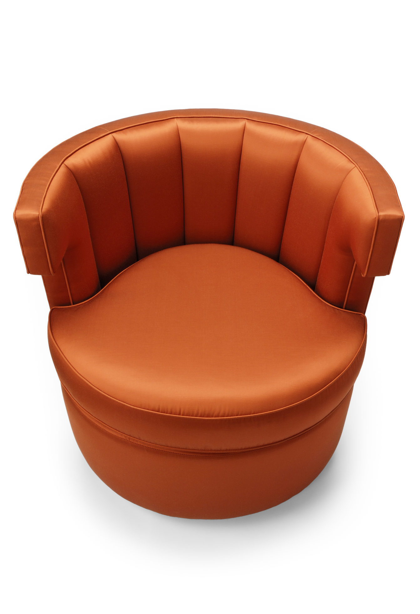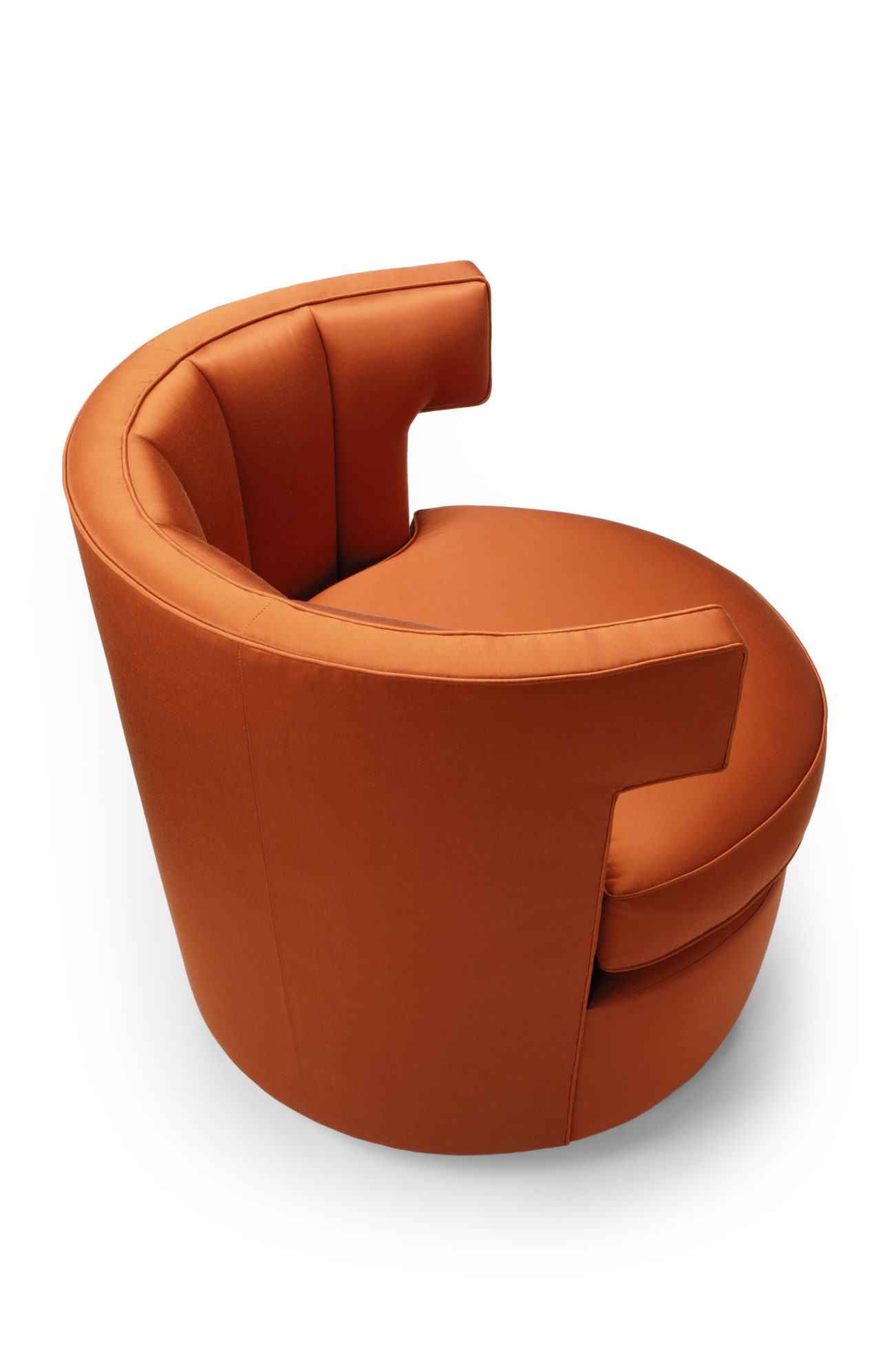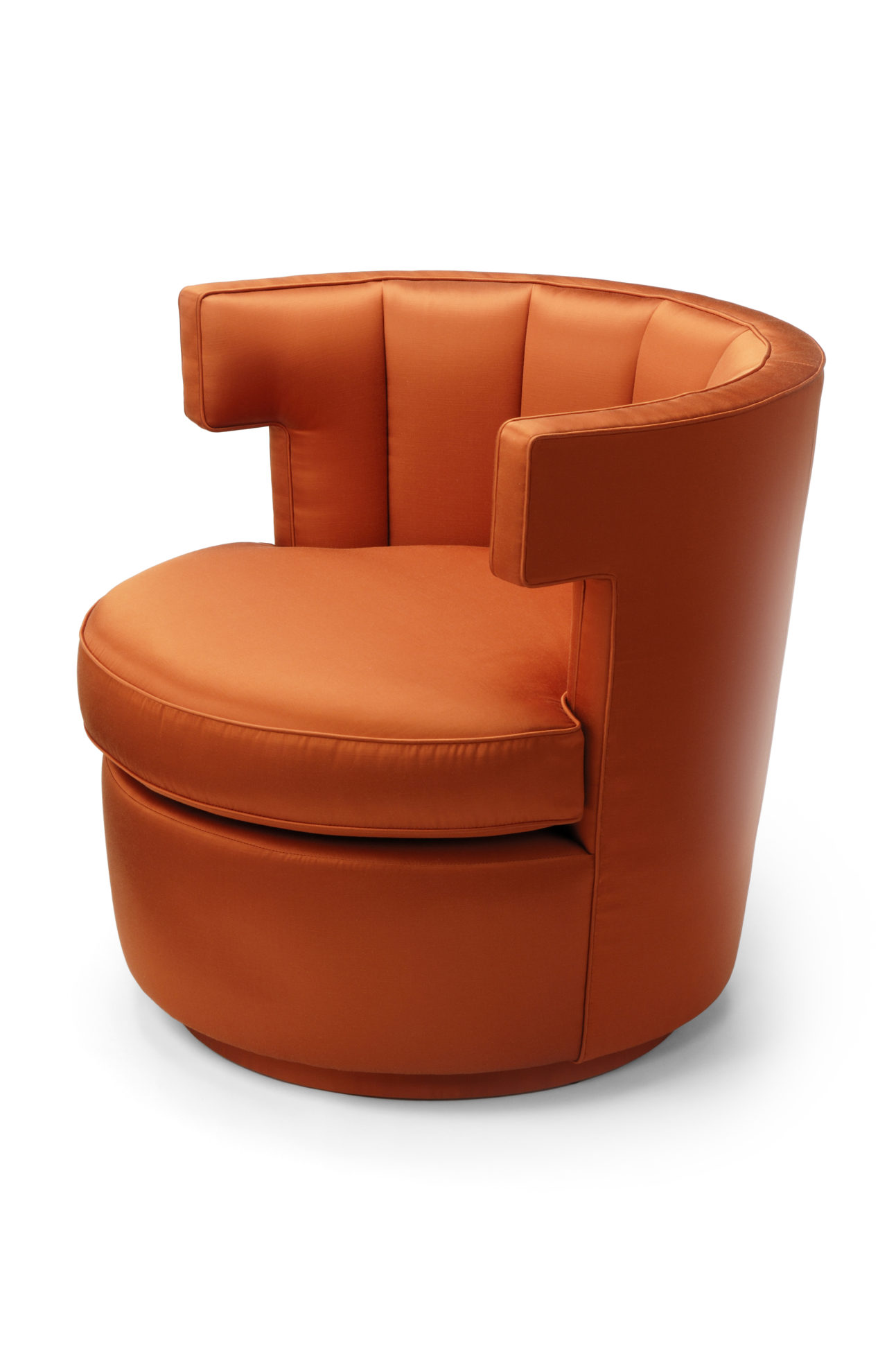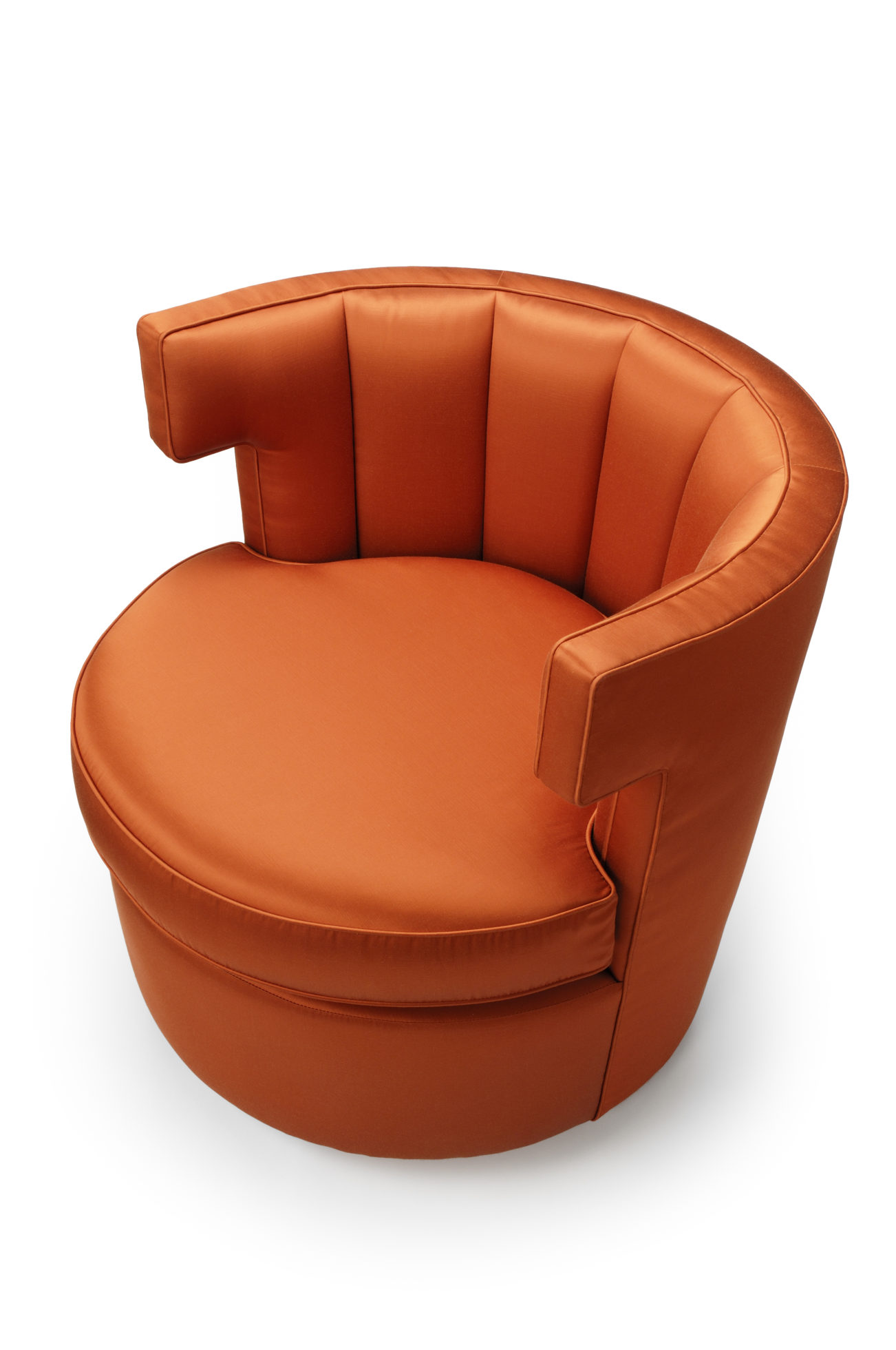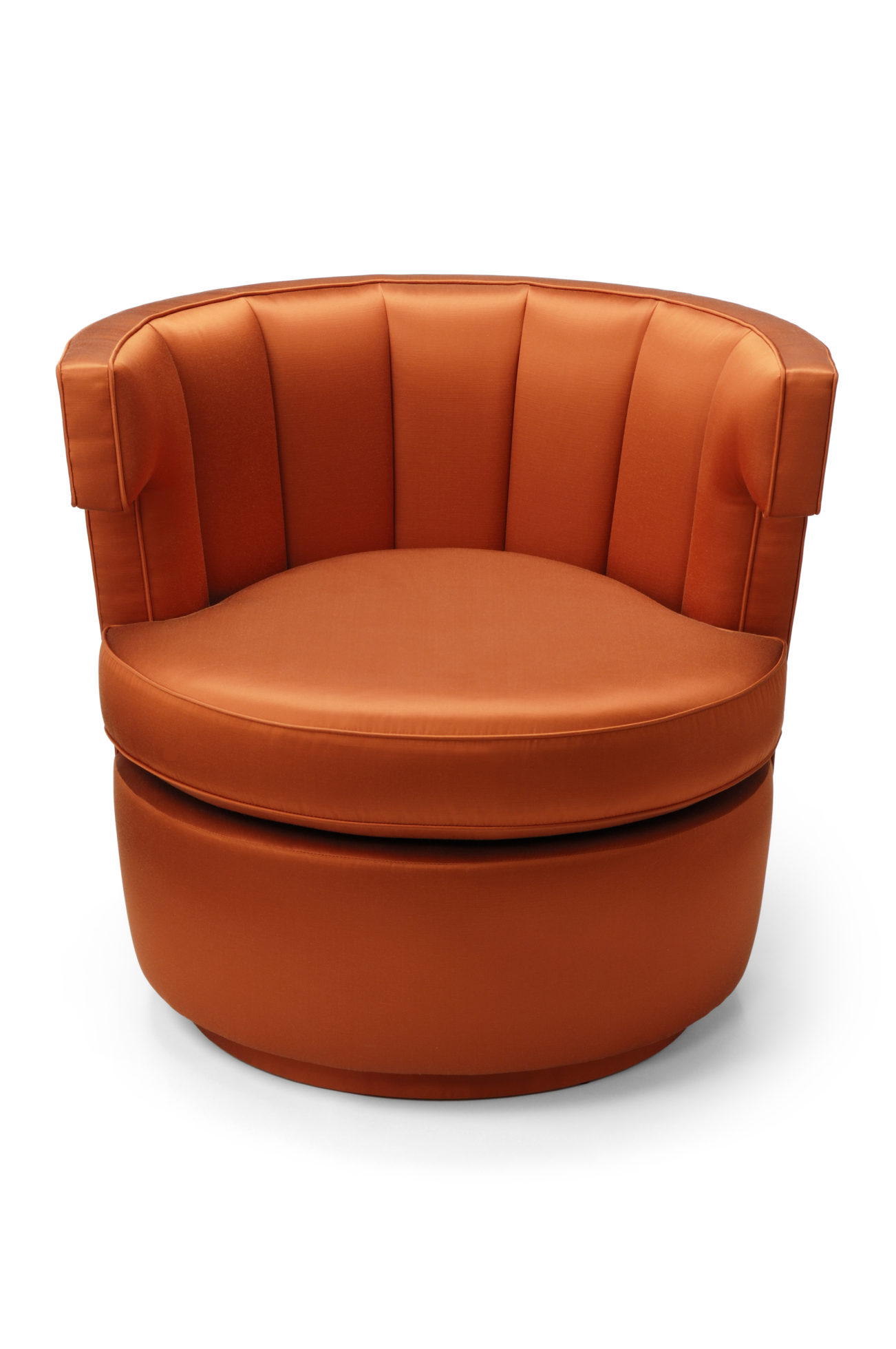 Sazerac 沙发椅简便又放心,在酒吧、休息室或卧室里都很舒适。这里展示的是软垫缎纹织物。椅子底座可用金属或织物覆盖