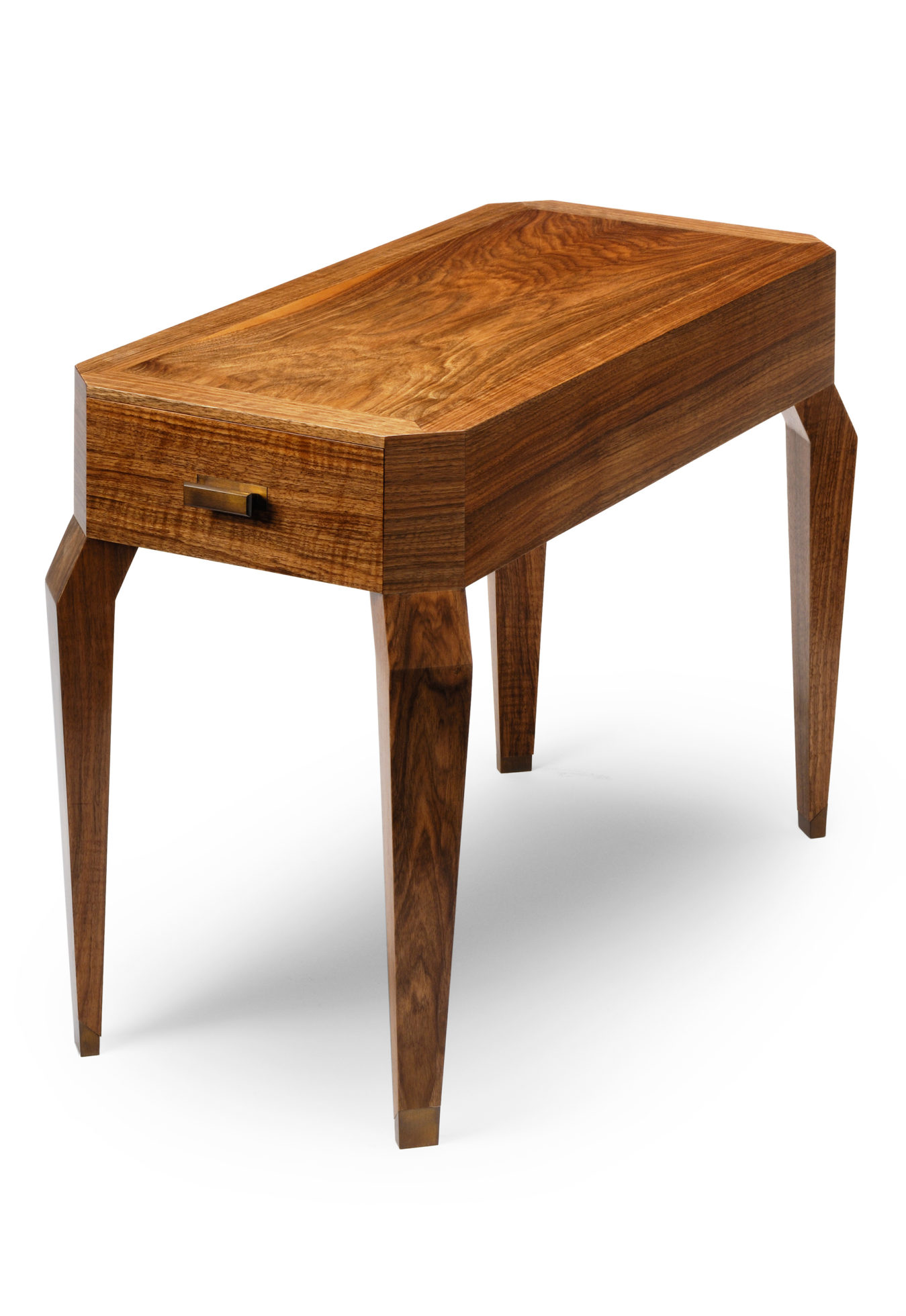 这个庄严的边桌传统上由实木和单板构成,带有坚固的金属手柄和燕尾形抽屉。