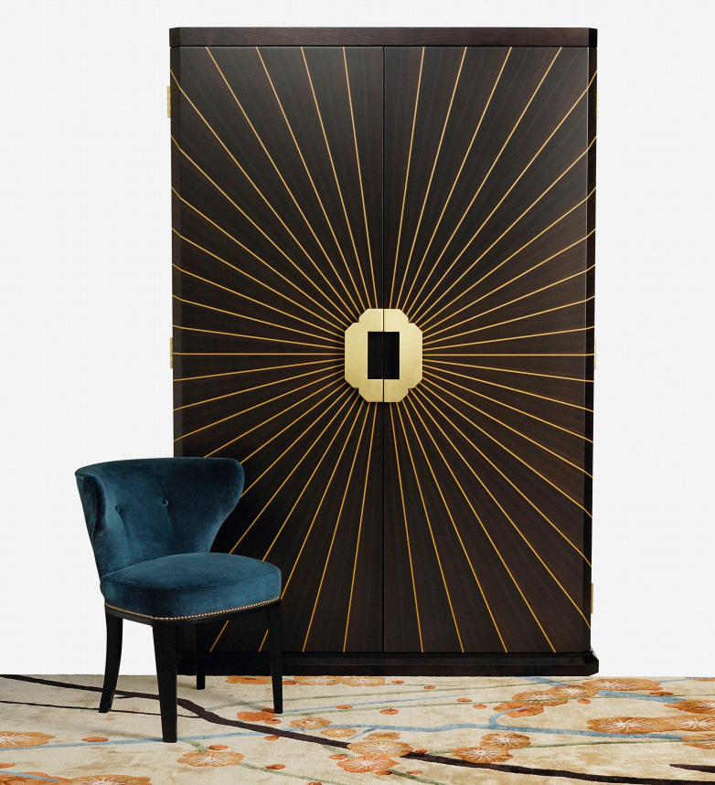这是一个天体中心件,超新星内阁带有可调节搁板。 内部可以指定为衣柜,酒吧或其他用途。 其他木材和金属饰面可供选择。