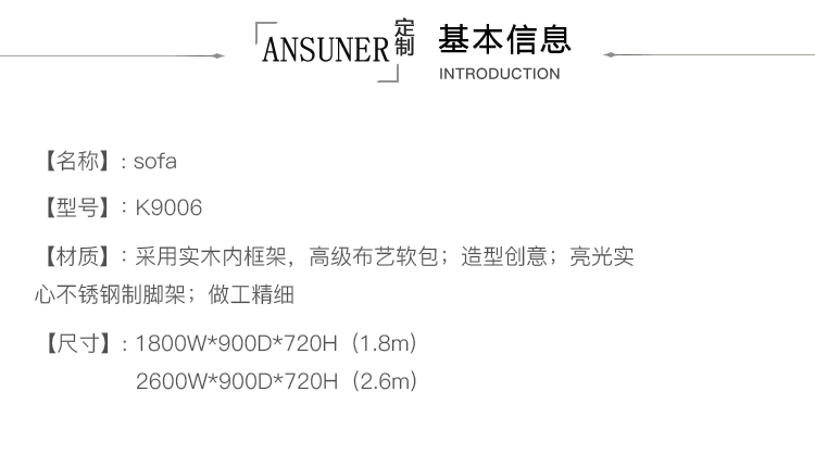 内部框架采用钢材料,填料为不同密度的无CFC聚氨酯泡沫和喷胶棉。面层使用可拆换面料或皮革。