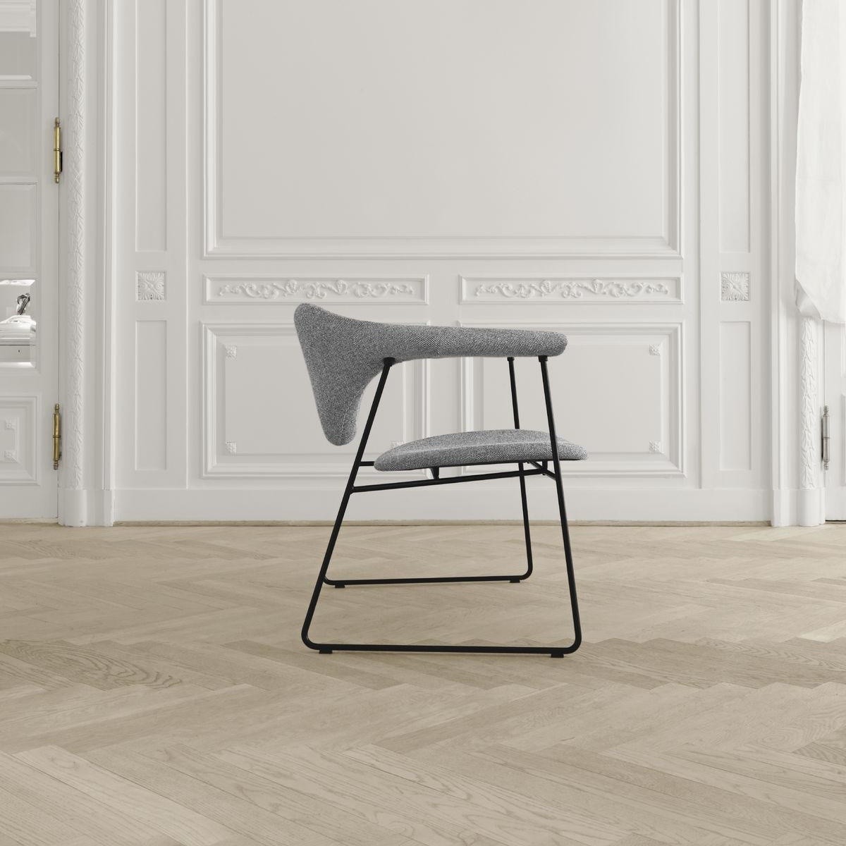通过GamFratesi的Masculo系列,我们看到了Gubi推出的全新潜在经典家具系列。 Masculo雪橇基座椅采用粉末涂层黑色或铬钢杆结构。 座椅和靠背可以选择布料或皮革装饰。 包括塑料滑动,可根据要求提供毛毡滑动。 还提供不同的基本选择以及休息室版本。