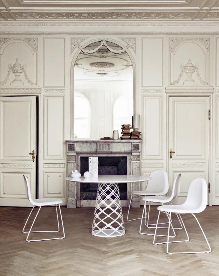 青山(Aoyama)是东京的一个社区,以其时装屋,餐厅和购物而闻名,是Paul Leroy为他的青山桌寻找灵感的地方。 该表系列在激光切割钢板中使用几乎透明的基柱,使桌子具有视觉亮度。 单基柱表可以支撑圆形桌面,而两个基柱可以支持带圆边的矩形桌面。
