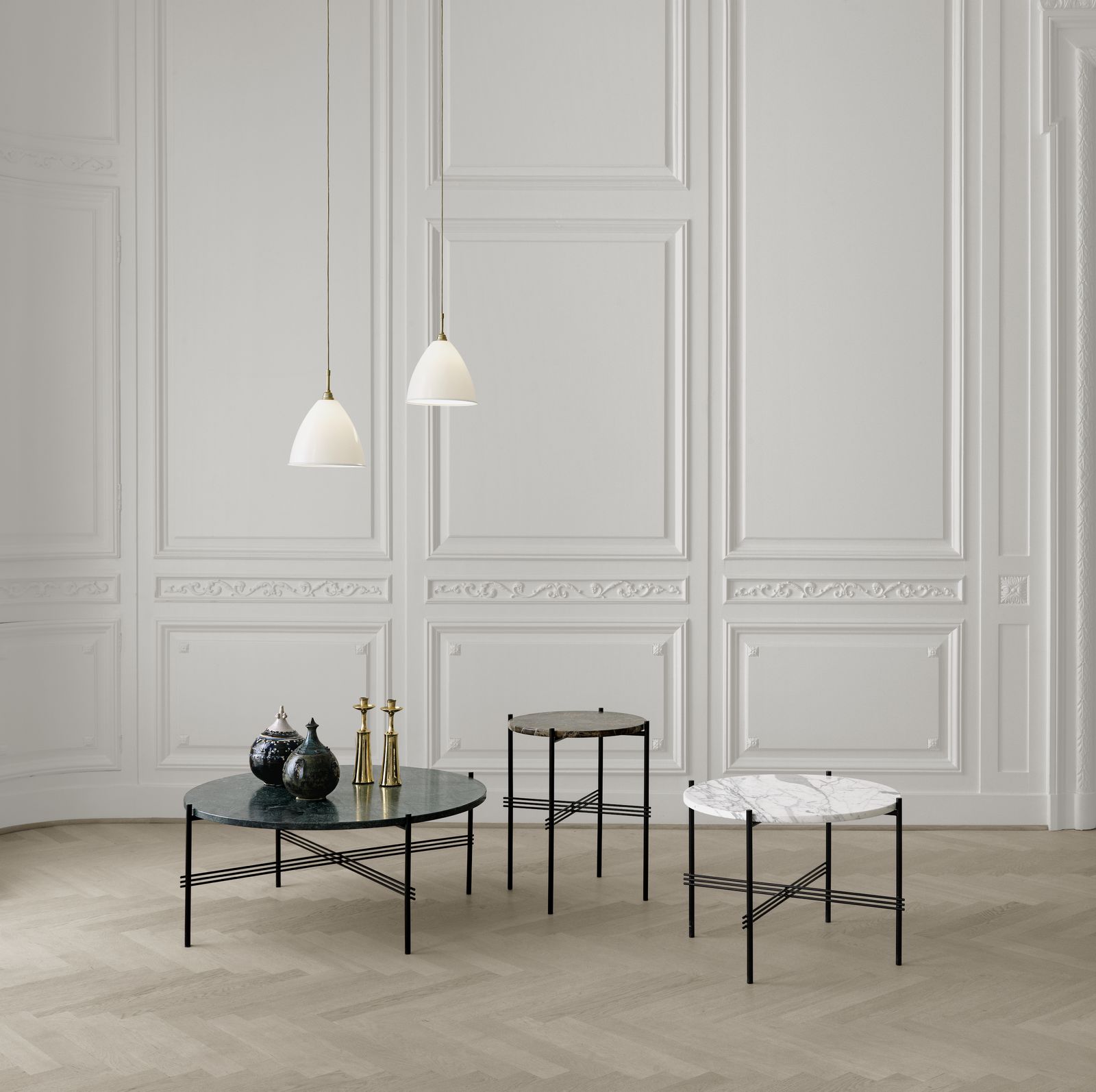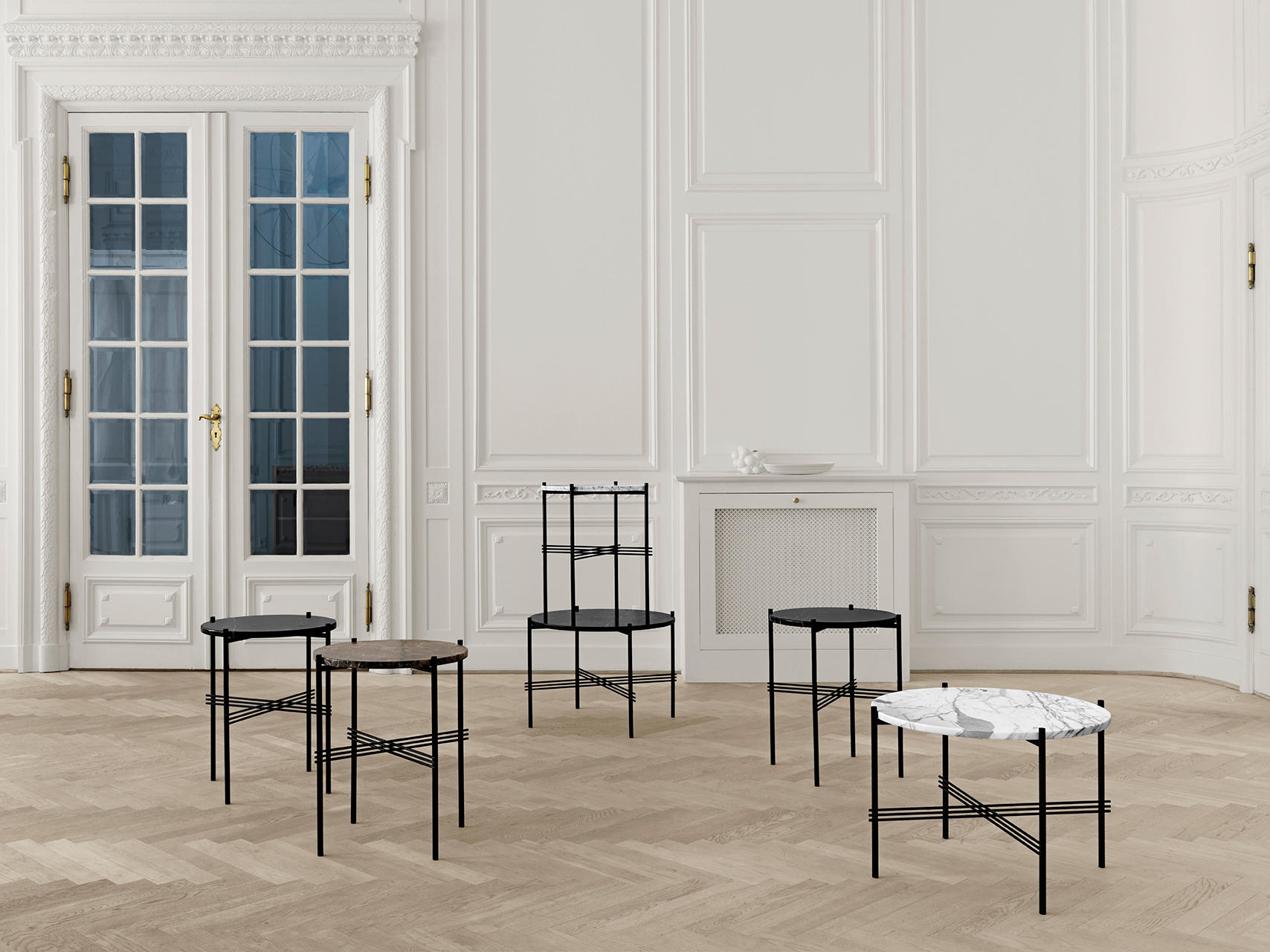 由GamFratesi独家设计的TS系列,是为哥本哈根著名餐厅The Standard而设计的。不仅仅是桌子的名字从古老的海关得到了灵感,还有美学和材料的选择。坚硬的大理石桌面与细长的金属底座形成鲜明对比,强烈地参考了建筑的建筑结构,材料在场地中被发现。为了进一步扩展它的多功能性,这个系列现在也可以用彩色玻璃和黄铜底座装饰豪华的桌面。TS集合由一张躺椅、一个矩形和一个圆形控制台组成,有不同的大小和颜色组合,因此可以根据大小、颜色和组合的表的数量创建不同的表达式和函数。然而,它们本身是美丽的。