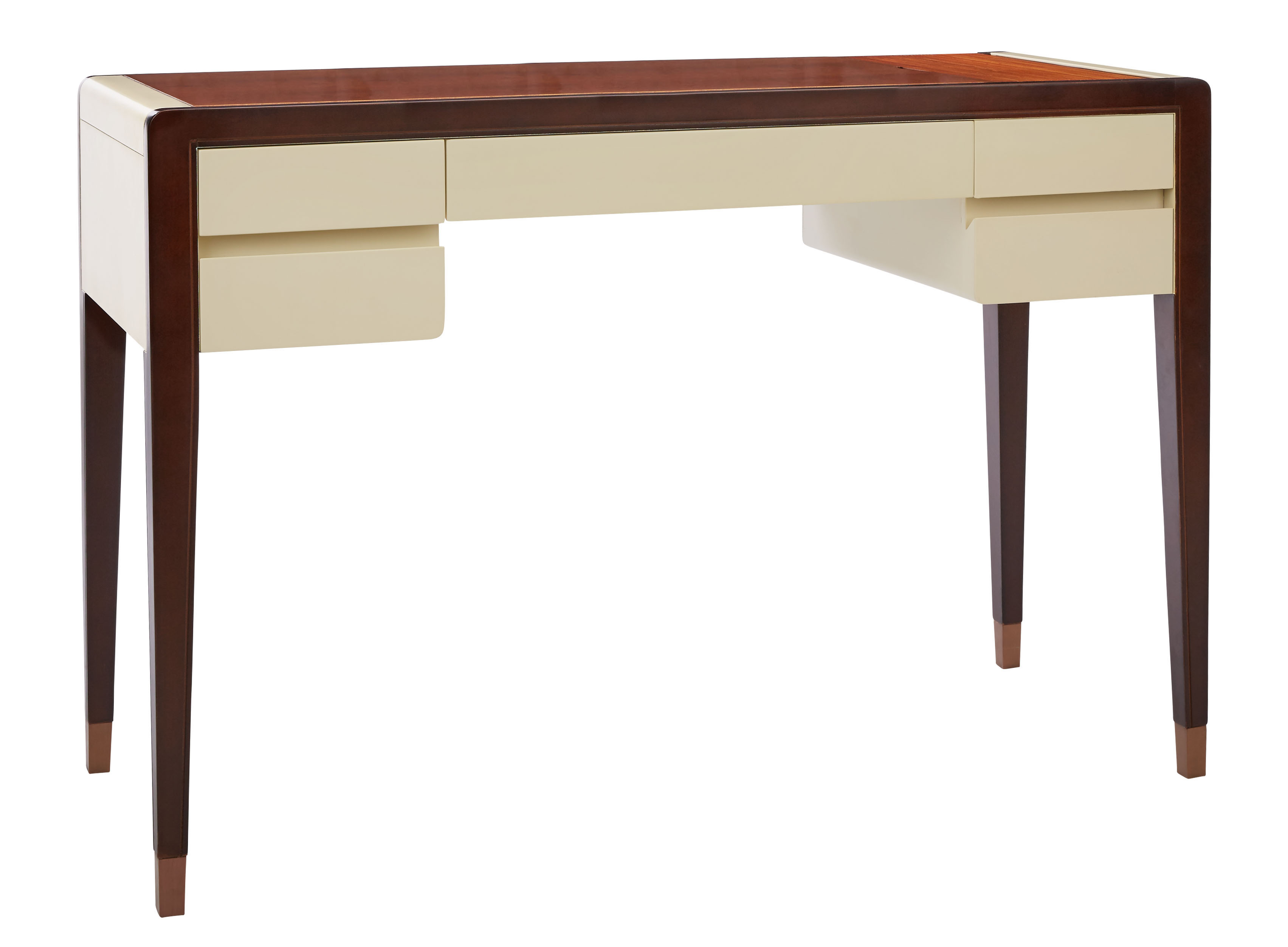按中国“提篮”的造型设计而来的梳妆镜,精巧中颇具韵味,镜面与桌面可分离,镜面下方的小抽屉面板采用燕尾榫造型,呼应整体调性。抽屉面采用燕尾榫,美观而又实用;铜脚,赋予中式韵味的同时以防磨损;玫瑰金的金属装饰更符合年轻品味。