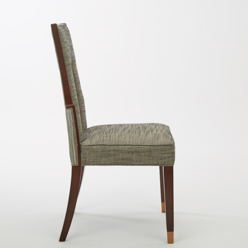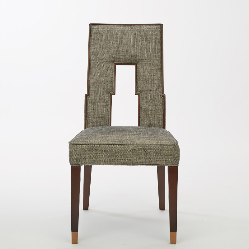 布包饰工艺,由经验丰富的技师手工独立完成,确保美观、耐用又符合人体工程学;铜脚,赋予中式韵味的同时以防磨损。线型具有浓郁的Art deco风格,现代简洁又充满艺术调性,背部镂空部位方便搬动。