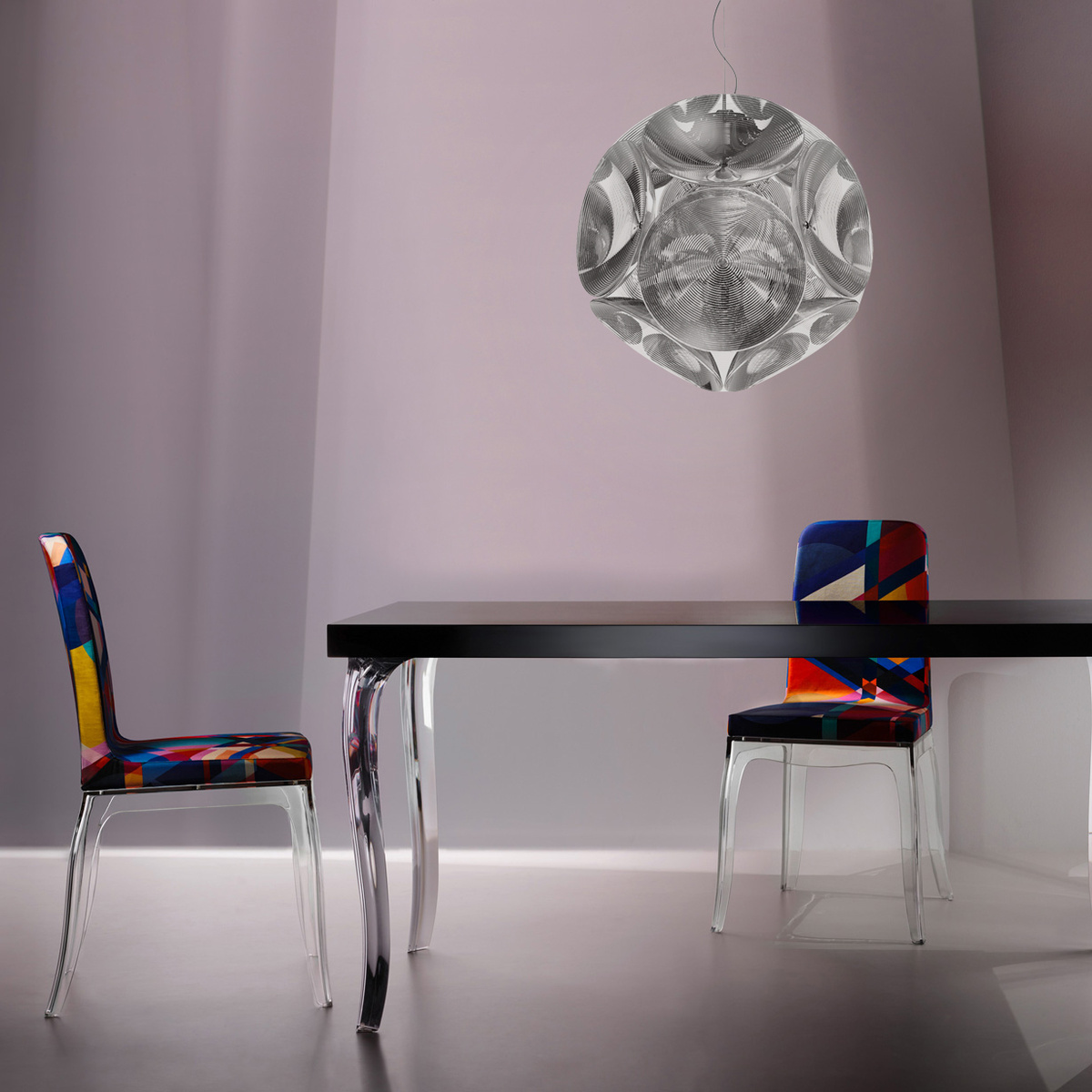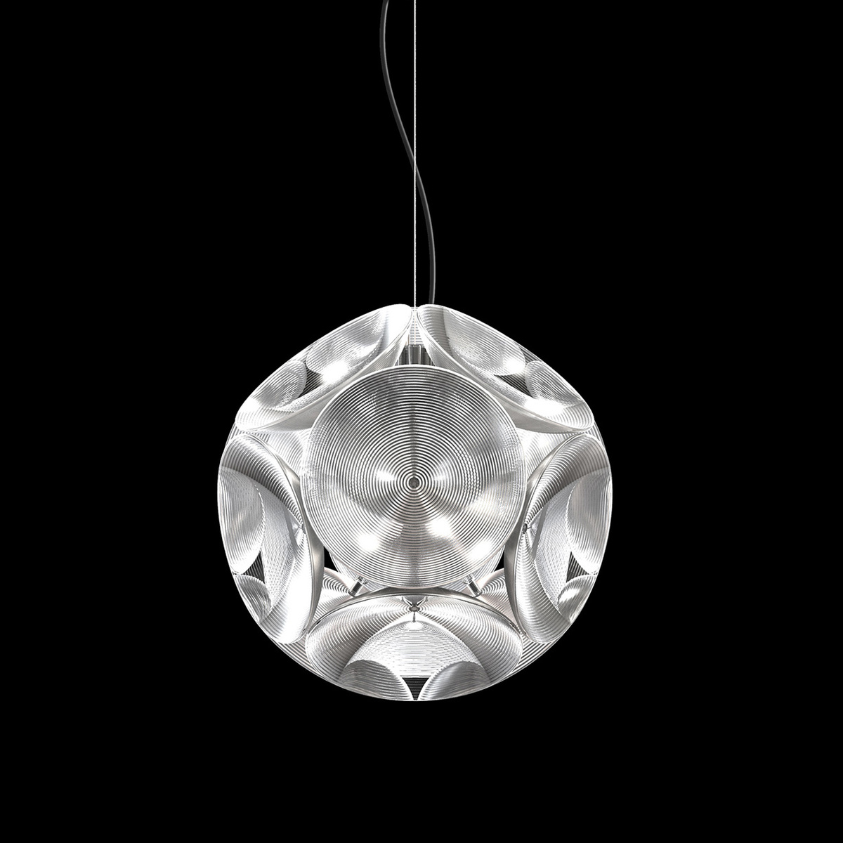在常规十二面体的每一侧,Hutten都放置了一个圆形反射器。 结果是一个有趣的3D对象,你看到的每个角度不同变化。 丰富的物体,为空间提供了大量的氛围。 无论是悬挂版还是落地版。