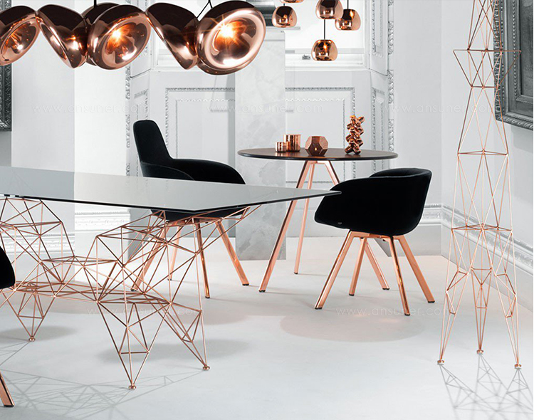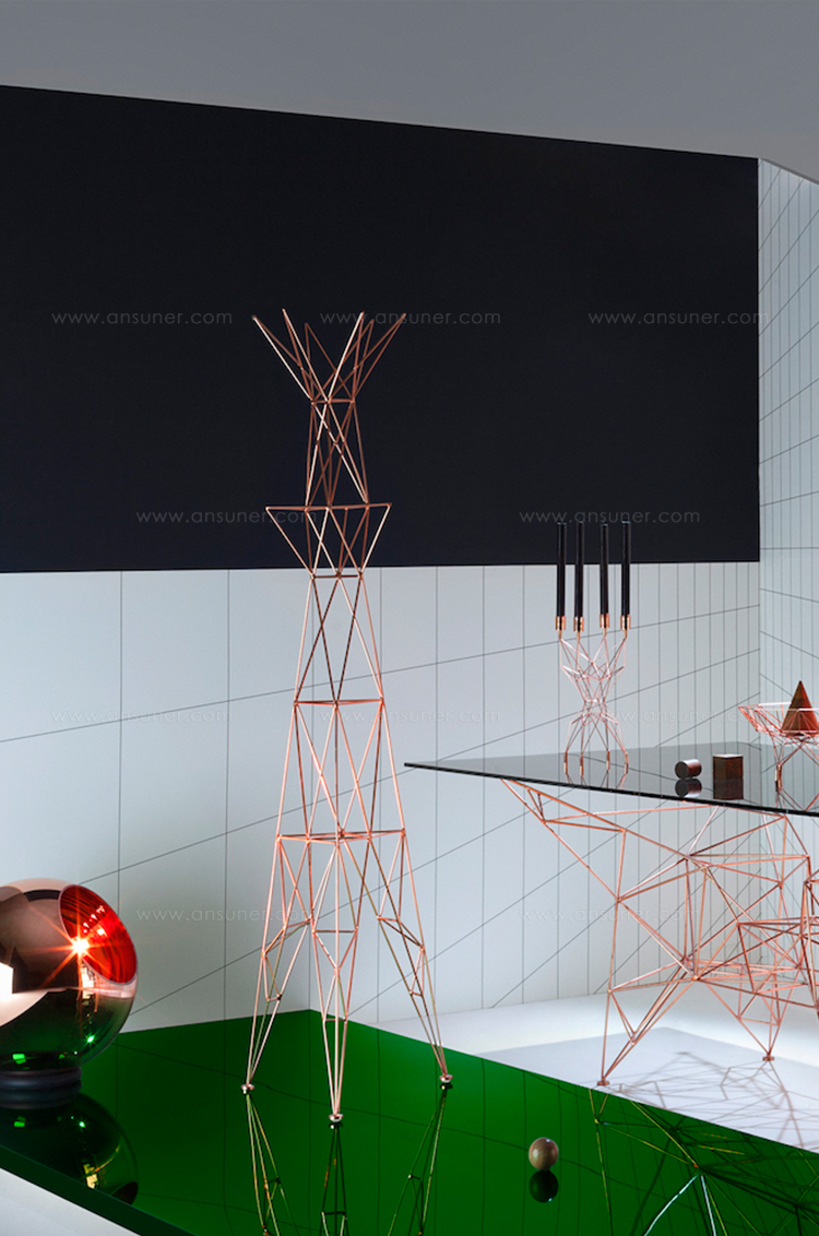 铜脚的设计就像一座桥的结构,它的手被焊接在一起,这使得它有了一个空中的外观。