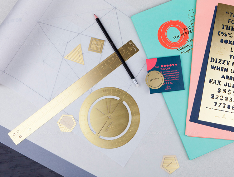 终极桌面工具。坚固的铜制尺子,刻有耐用的刻痕和我们的传统标志。
