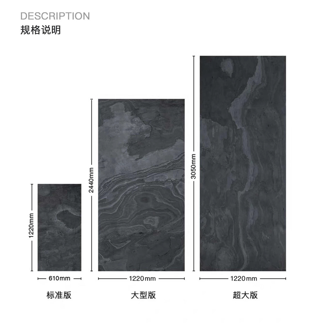 A(61cm*122cm)B(122cm*244cm)C(122cm*305cm)