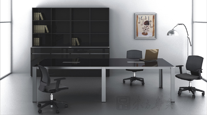 Meeting会议桌依然保持着Rising的简约风格。桌面同样采用镜面高光UV漆或松木纹饰面和细薄的金属封边,桌脚设计为“L”形和“T”形的铝合金柱脚,简洁明快、轻盈大方,让整个会议空间豁然开朗。