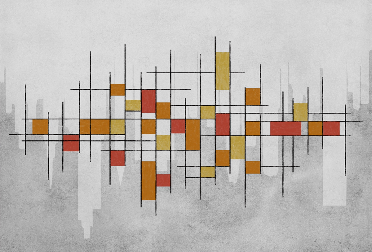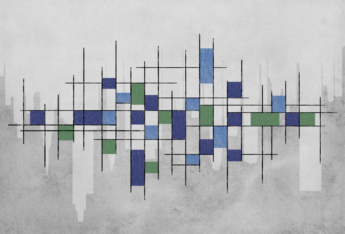 空间几何系列以点线面的构成作为创作主题,利用不同的构成方式,创造多样化的视觉效果,我们放弃了具体的内容和情节,突出运用这些纯粹的绘画语言来表现艺术形式的纯粹美;点、线、面和构成手法,就像是大厦的基石一样,看起来毫不起眼,但力量却无比强大,它是我们不断探索的源泉和情感表达的桥梁
