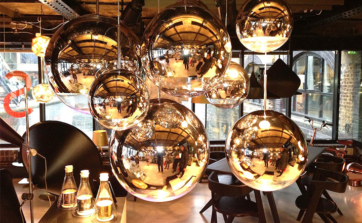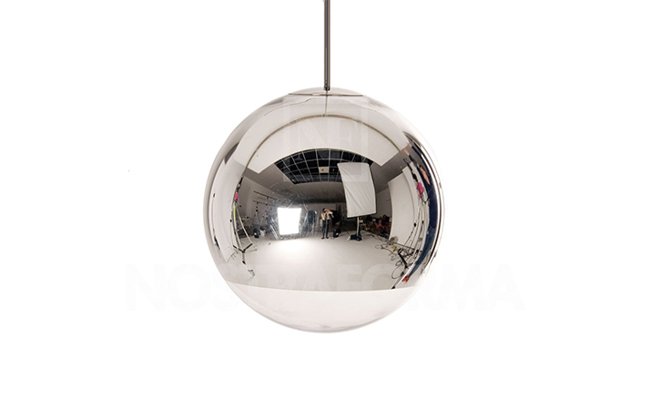 "A highly reflective shade inspired by the space helmet. The Mirror Ball is created by exploding a thin layer of pure metal onto the internal surface of a polycarbonate globe. This has become one of the most iconic products in the Tom Dixon collection. Offered in two sizes.The Fat Spot Light was manufactured using a special vacuum metallization process which has been developed over a number of years by Tom Dixon in partnership with their factory. The technically complex nature of this process (i.e applying a very thin layer of real metal to the internal surface of a polycarbonate form, which is then UV coated) requires highly skilled workers, specific machinery and clean environments to meet demanding quality levels. Metalized polycarbonate products must only be stored & installed in temperature controlled environments to preserve the quality of the product. Please take greater care when handling and installing.