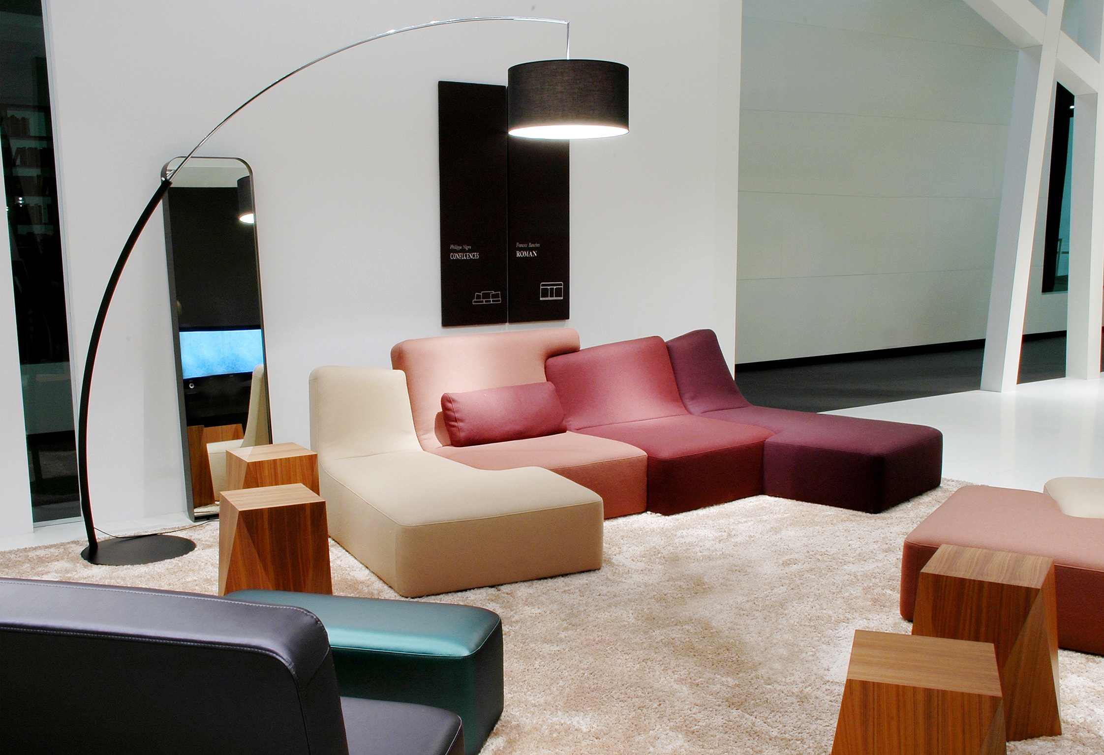 法国写意空间公司(Ligne Roset)在今年的科隆国际家具展上展出了这一款Confluence模块沙发,并获得了最佳设计奖(Best of Best)、最佳项目奖(Best Item)及最佳系列奖(Best System)三个奖项。Confluence模块沙发由法国设计师Philippe Nigro设计,这款沙发非常规的外型构造突显了设计师非凡的想象力和创造力,其相互交汇的构造看上去就像拼图一样充满趣味,而这种造型无疑也会给其陈设空间带来一种新鲜感。Confluence模块沙发可让使用者随其心意而将不同颜色、不同形状的模块搭配成各种组合,这也使其为体型不同,审美有异的各类人群都提供了个性化的就坐方式。设计师的创作灵感来自于现代美术作品中重叠的图形和笔直的线条,而略去了传统家具设计经常遵循的对称原则。Confluence模块沙发由多层木板和焊接钢片作为框架,内部由各种密度的聚醚泡沫材料填充,其表面面料为聚酯纤维织物,沙发脚由黑色聚丙烯制成。Confluence模块沙发各部分间相互重叠与镶嵌的方式令人眼前一亮,实用而有趣,满足了外型的美观而又充分体现了强大的功能,这应该是每件家具都追求的目标吧。