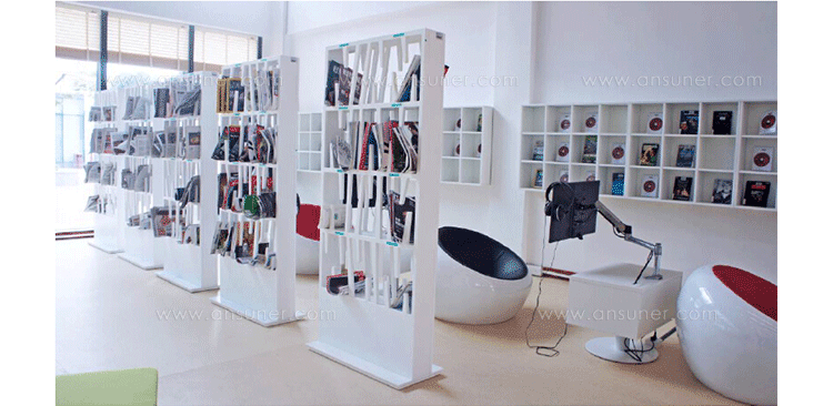 伊万是一款外观与实用并行的书架,它独特的不规则支架可以让空间看上去更有层次,而双面通透的设计保证了它不仅仅可以靠墙,也能作为隔断使用。同时,它的设计也能起到功能分区作用,使用者可以把不同类型的书籍文件分开区域放置,区域的大小不一显示使用者可以针对内容所需的大小进行挑选。