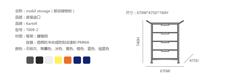 Mobil storage(移动储物柜)是由意大利国宝级设计师Antonio Citterio(安东尼·奇特里奥)设计的,他的设计跨越三大洲,已成为设计领域最活跃的渊博人士,1972年,他与著名品牌Arclinea厨具、flexform、Flos灯具等合作,1987年,为B&B设计的座椅获金罗盘奖.Mobil取自移动机制知名,带有随处收纳、移动变幻的多元满足,以多层抽屉式的收纳,搭配置物层版,不论是作为床边柜、工作室文件抽屉、生活收纳等,都非常合适。此外,另可选择滑轮式样、或是固定式座脚,自在搭配。