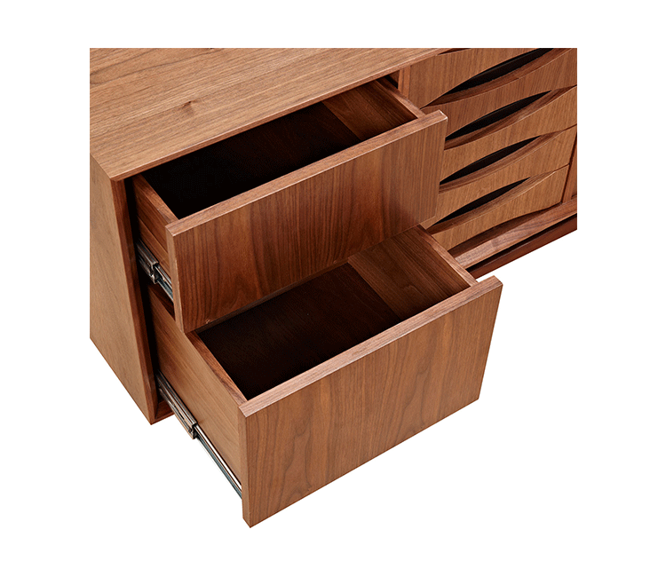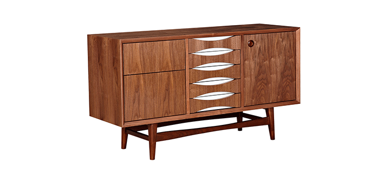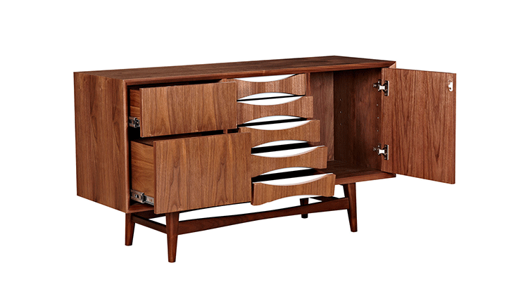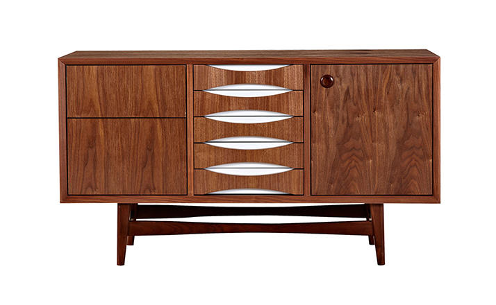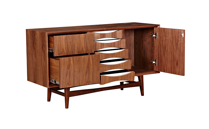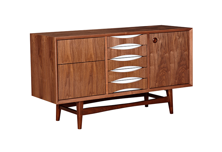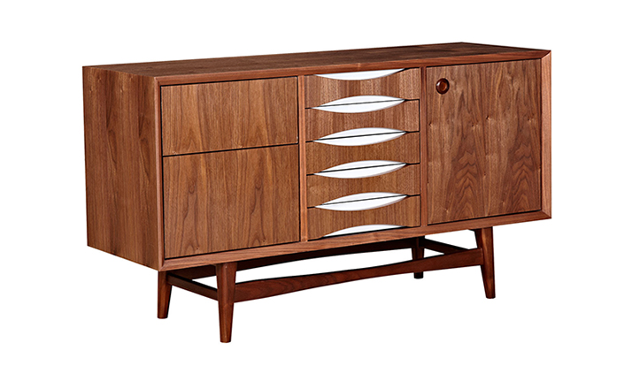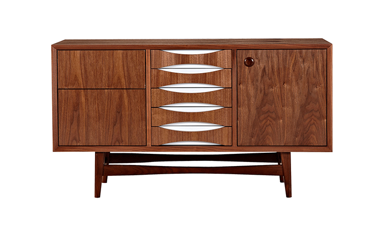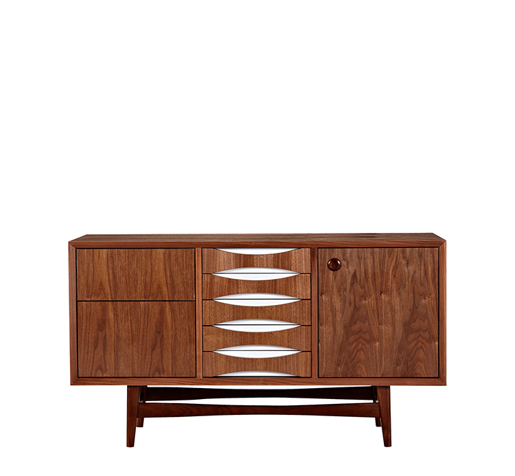 houston sideboard(houston餐具柜)是Kardiel公司制作的经典实木家具,具有世纪中期的现代风格。它如恒星般色彩绚烂,拥有多个隔间以及数吨的存储空间。在现代主义的存储家具上, Finn Juhl和 Arne Vodder 最先尝试胶木和天然木的组合运用。这是大胆的创新,他们结合传统的新鲜的新兴技术与现代主义的概念。制作采用精选MDF板基材胡桃木或水曲柳木皮贴面、胡桃实木或水曲柳实木脚架、环保油漆喷涂、做工精湛,是您理想的选择。