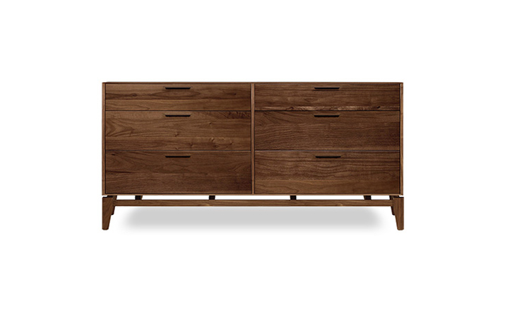copeland soho 6 drawer dresser(科普兰soho 6抽梳妆台)是Copeland Furniture公司copeland实木系列之一。我们塑造环境,然后环境塑造我们,copeland旨在传递的舒适度和清晰度的感情。设计借用了一些最优秀的传统和当代的设计要素,非常具有特色。这个中世纪现代风格的设计,提供了6层平滑抽屉存储空间,可以使您更好的归纳自己的物品,提供大量存储空间。制作采用精选MDF板基材、进口美洲胡桃木,贴面、实木脚架、彩色装饰边、环保净味油漆喷涂、做工精湛。