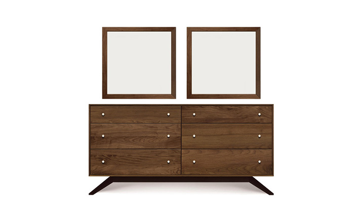astrid 6 drawers dresser(阿斯特丽德6抽梳妆台)是Copeland Furniture公司astrid实木梳妆台系列之一,宽大的八字形脚架非常吸引人注目,制作并非易事,它其实是一个大工程,同时能引发无限期望和激情,6个平滑抽屉,可以给与提供许多存储空间。制作采用精选MDF板基材、进口美洲胡桃或水曲柳或枫木皮贴面、实木脚架、环保净味油漆喷涂、做工精湛。