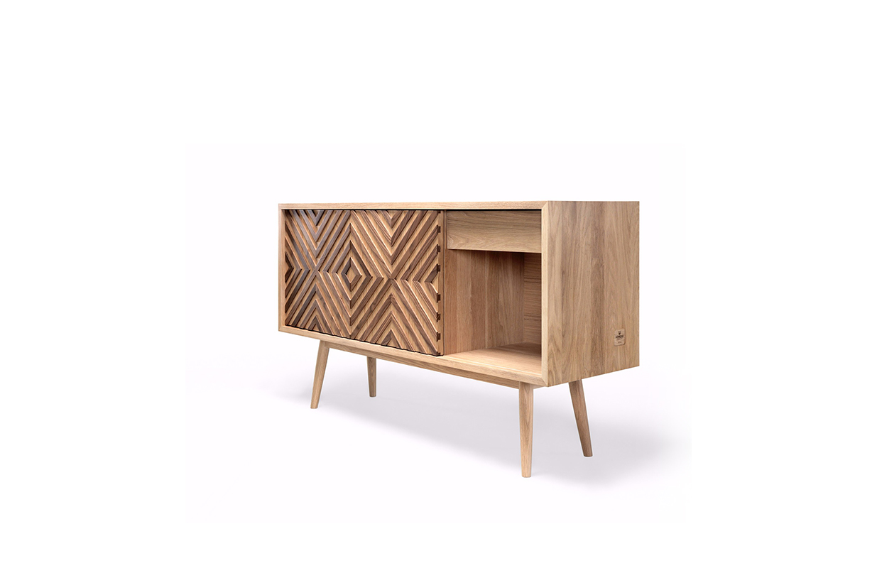 Casanova餐具柜:卡萨诺瓦是一块实木在100%,这可以是一个电视柜或简单地作为一个餐具柜。 门上的图案复制是由块橡木,胡桃木是固定的,熟练的工匠工作结合高质量的材料。 卡萨诺瓦是由五个空间:两个橱柜与滑动门,两个抽屉和一个开放的空间,两个可调节的架子,提供一个最佳的存储空间.