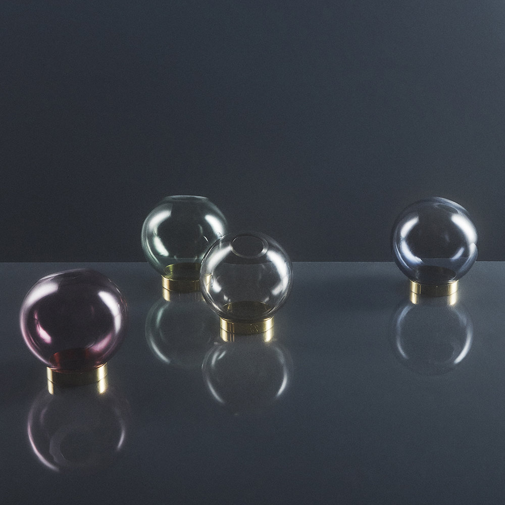 GLOBE 是一个优雅的器皿,由口吹玻璃制成,配上铜环底坐。您可以将它用作装饰花瓶或储物器皿。
