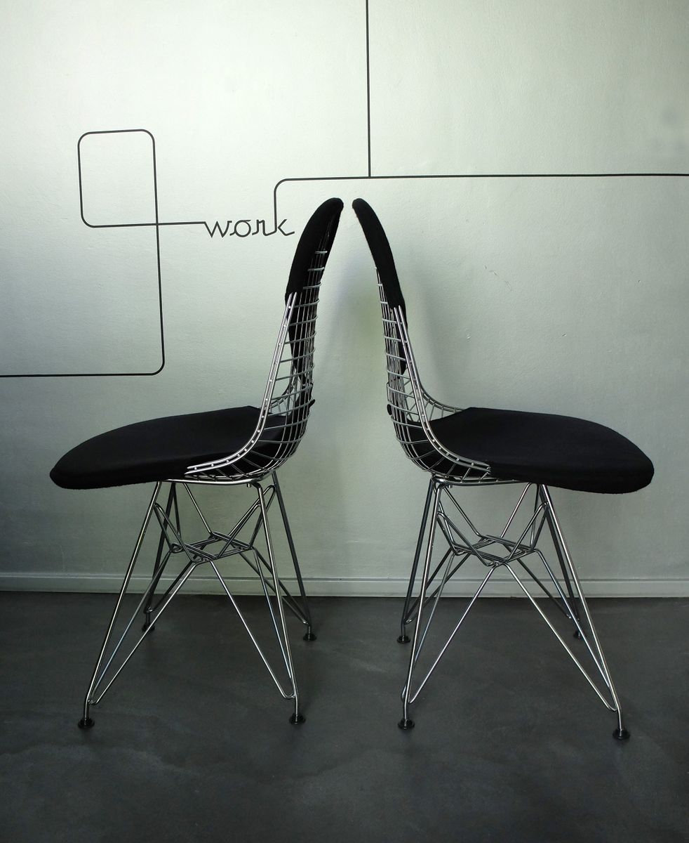 DKR 單椅結合了 Wire Chair 的網狀金屬椅座搭配鐵塔椅腳。