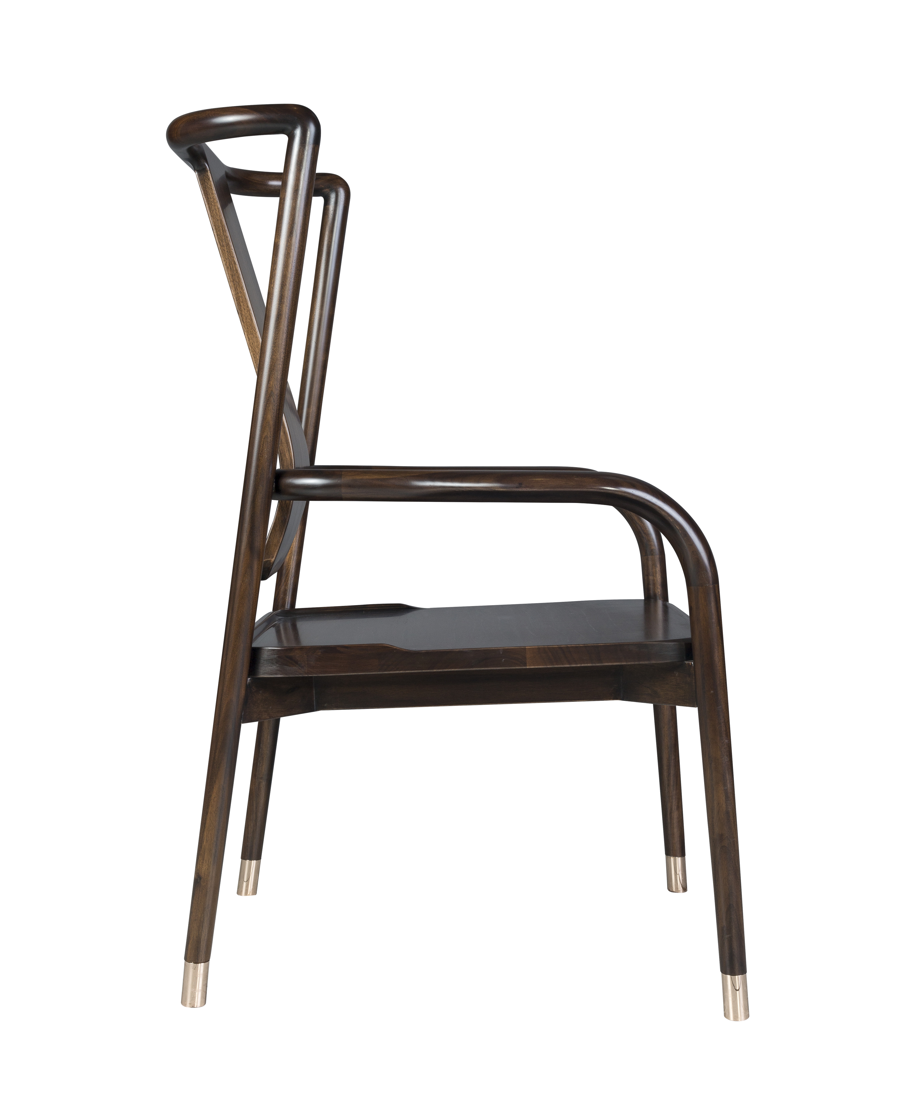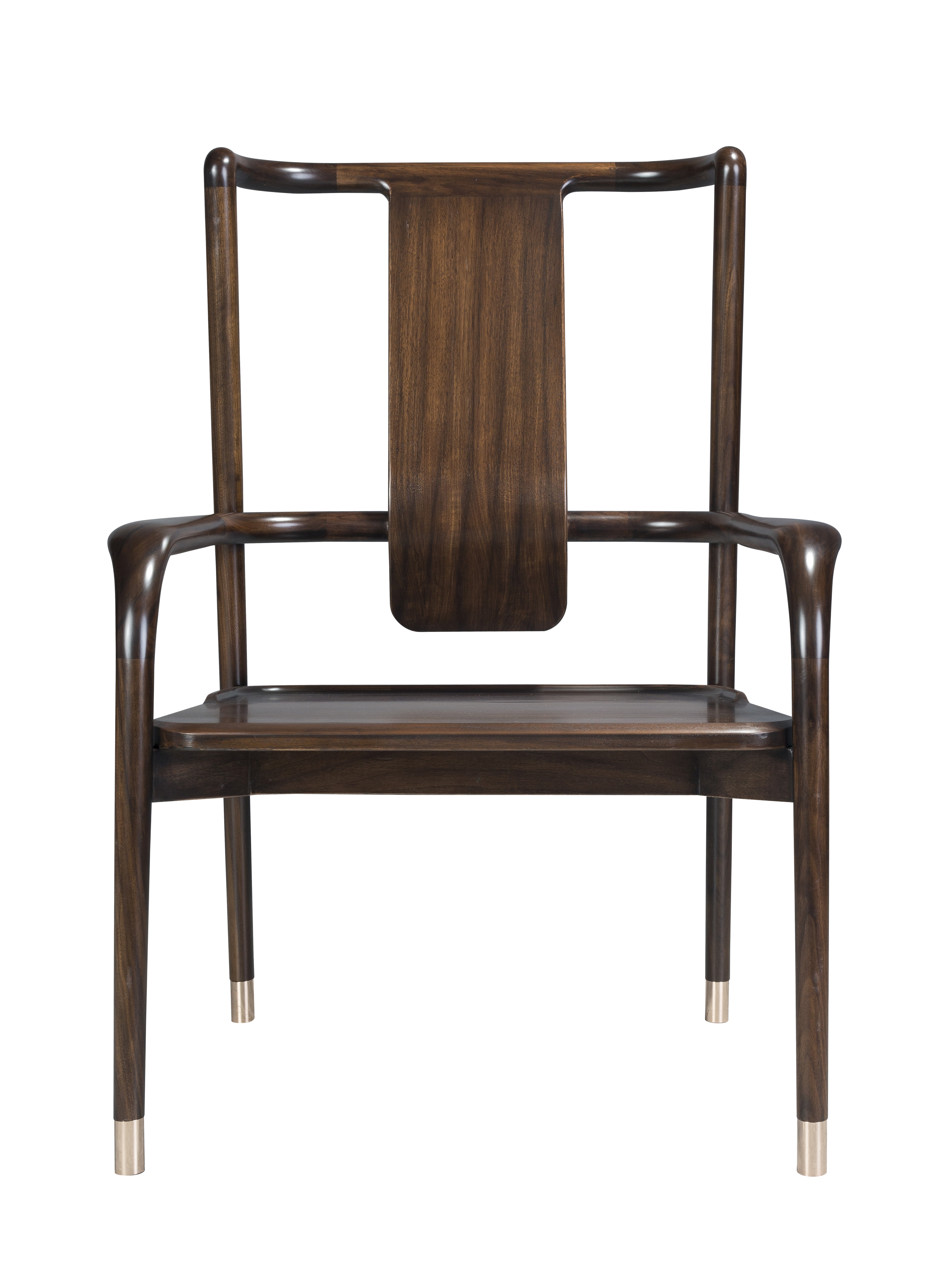 1.秉承明式家具形制,简洁干练,以线为主,通透灵动。 2.靠背板采用光素手法,素雅大方,通透灵动。 3.铜脚设计,赋予新海派韵味的同时防磨损。