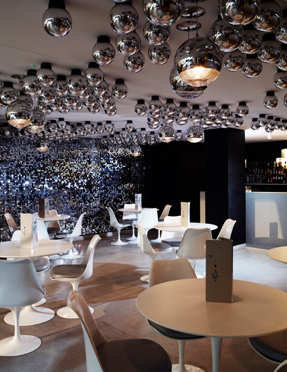 Design Brief Design Research Studio was asked to create a dynamic venue for a new concept in dining. The premise was to create a spectacular atmosphere which combines fine dining with an informal atmosphere, where the customers feel inclined to dance and participate with surprising circus and burlesque performances. The interior was to reflect the ‘circus concept’ within a flexible design. Design Challenges The main challenge was transforming the drinking and dining experience into a simultaneously stimulating entertainment space. This includes a series of flexible design features which allow for a variety of entertainment opportunities. In order to create integrity with the performance aspect of the brief, Design Research Studio referenced the history of the building as the Royal Opera House menagerie. Design Results The surrealist inspired design incorporates a landscaped ceiling of mirrored globes, a kaleidoscopic reception desk and a kinetic, 3d art wall. The bespoke furniture engages and entertains: the main dining table doubles as a stage (which moves to allow for a larger dance floor), the step into the lounge integrates a dance pole, a mirrored WC lobby houses a hidden water-fountain and animal inspired furniture encourage participation and conversation.